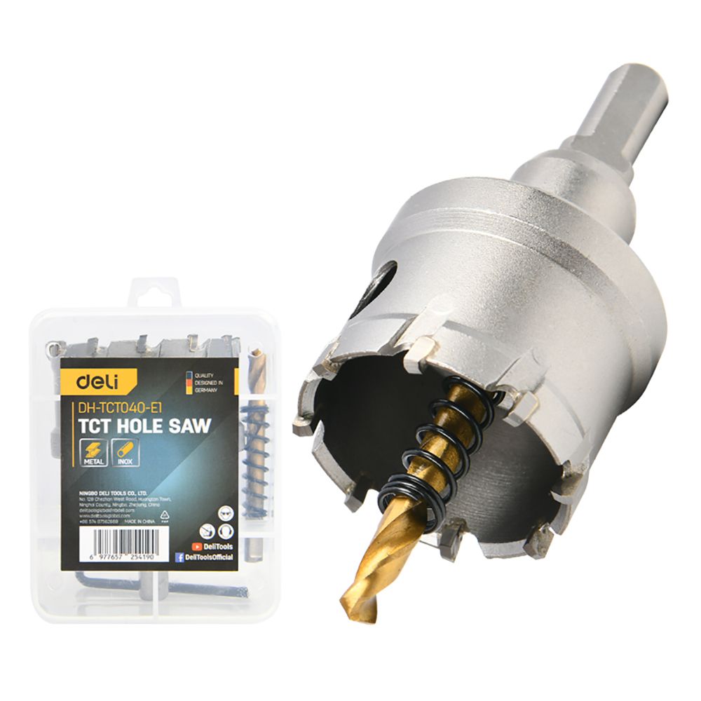 Коронка по металлу твердосплавная с центрирующим сверлом Deli DH-TCT040-E1 диаметр 40мм, шестигранный хвостовик