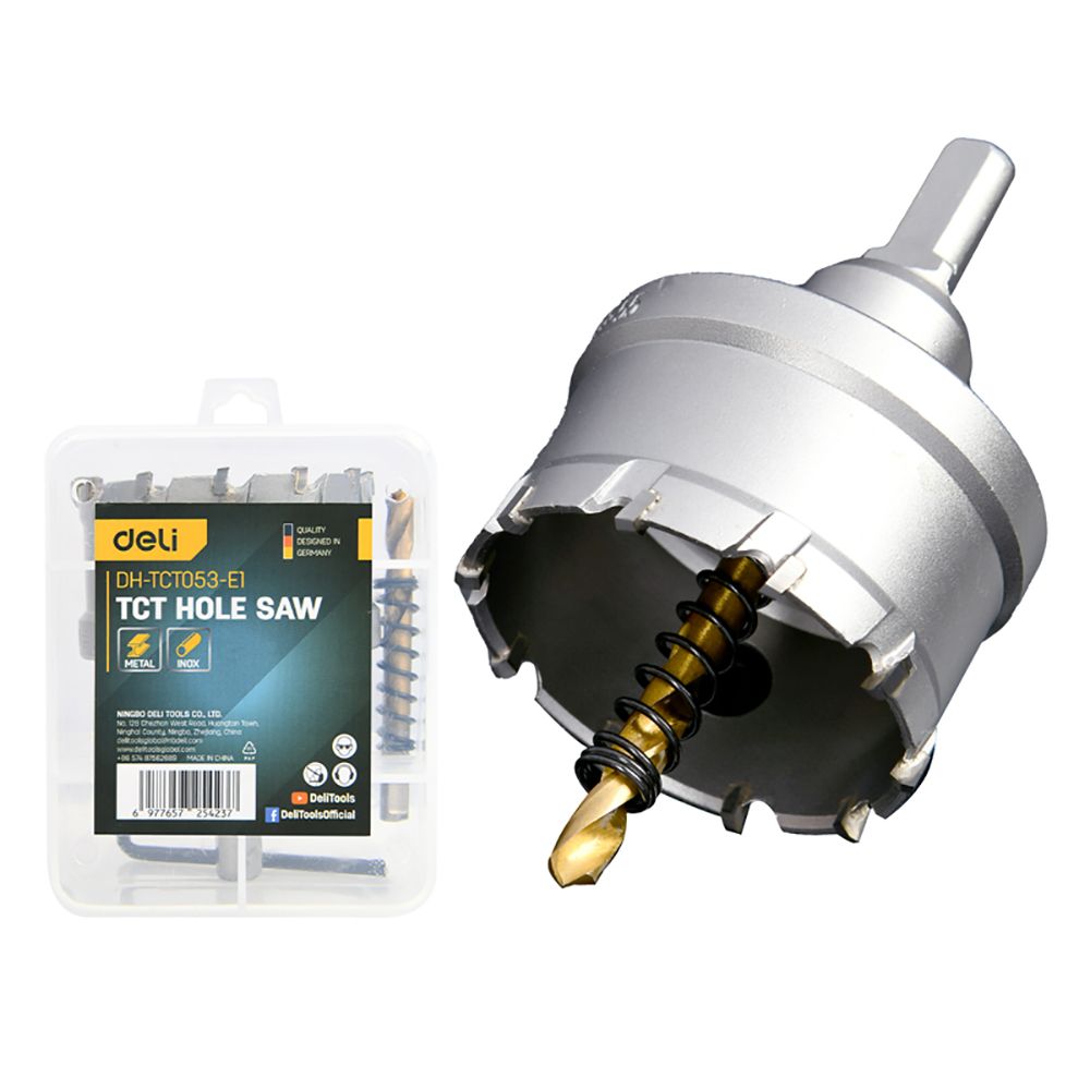 Коронка по металлу твердосплавная с центрирующим сверлом Deli DH-TCT053-E1 диаметр 53мм, шестигранный хвостовик