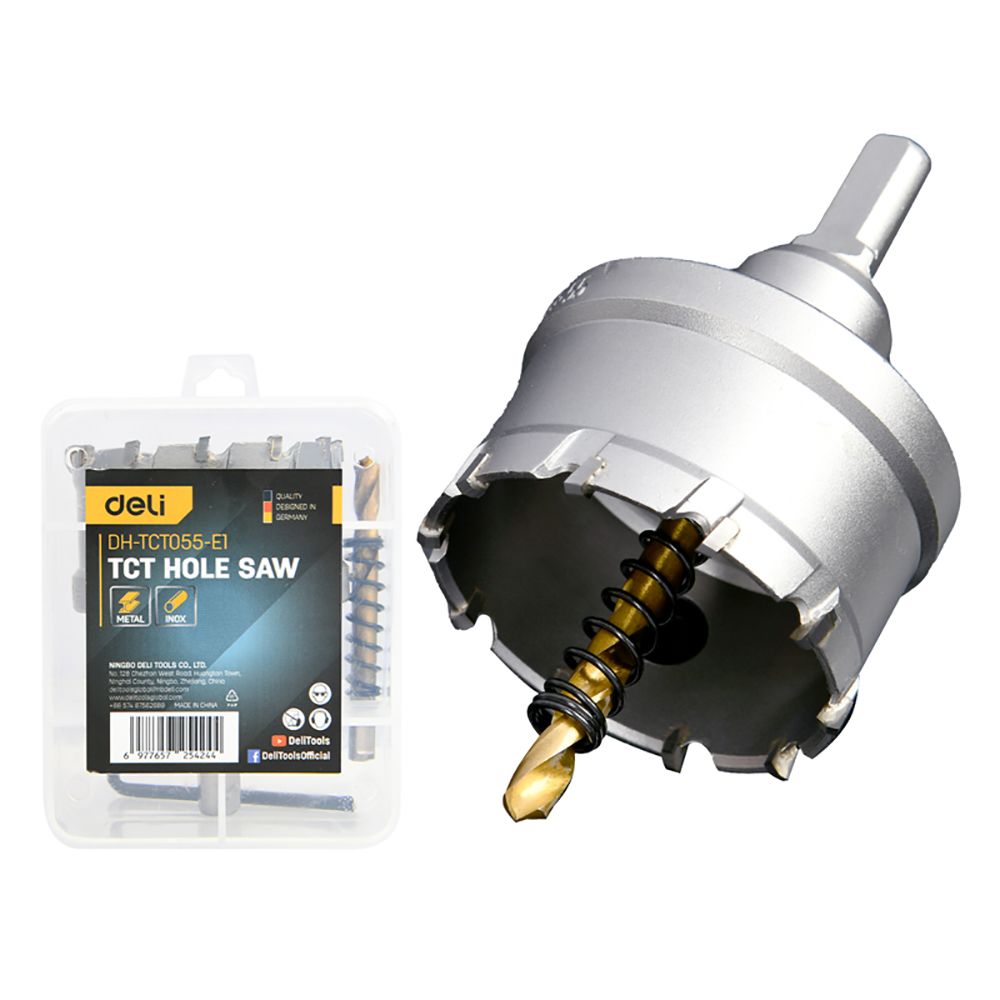 Коронка по металлу твердосплавная с центрирующим сверлом Deli DH-TCT055-E1 диаметр 55мм, шестигранный хвостовик