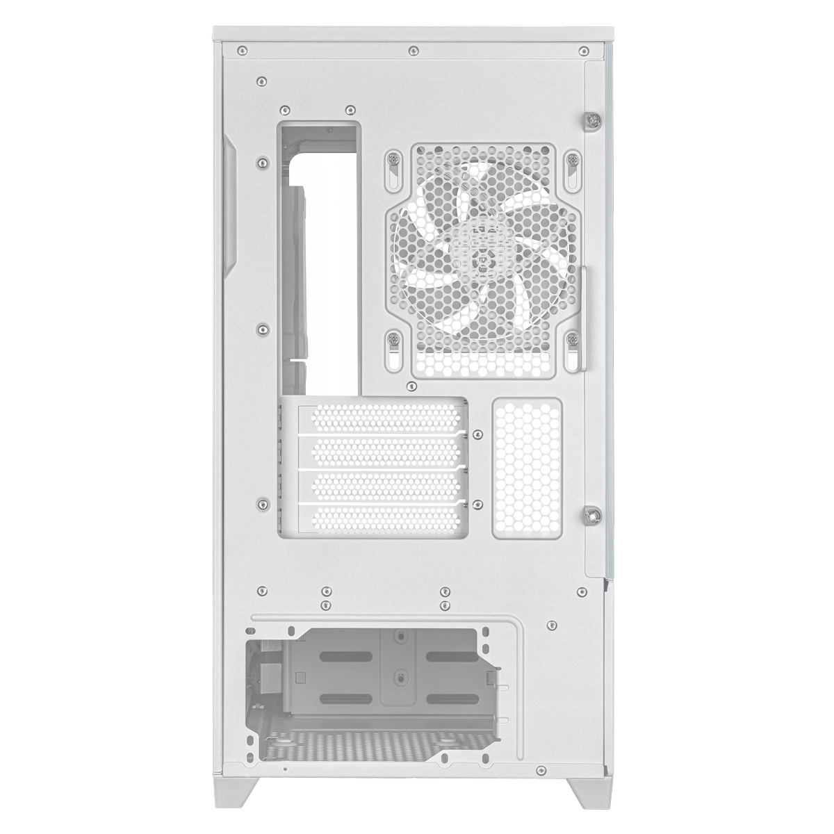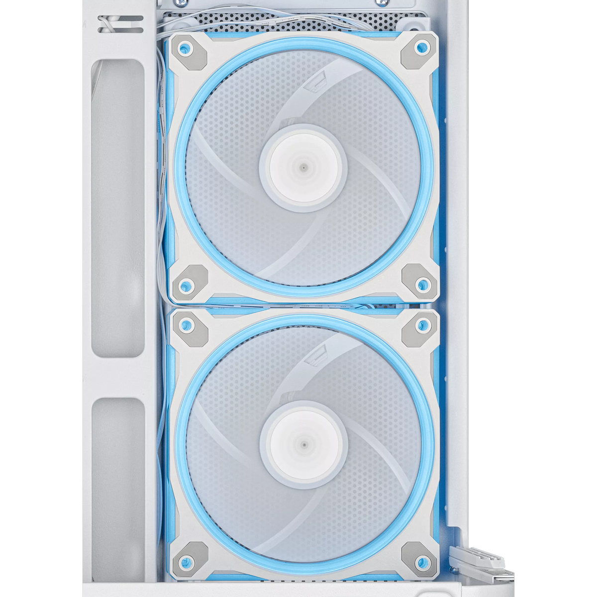 - Стильный дизайн: белый цвет корпуса и RGB-подсветка вентиляторов создают современный и привлекательный внешний вид.