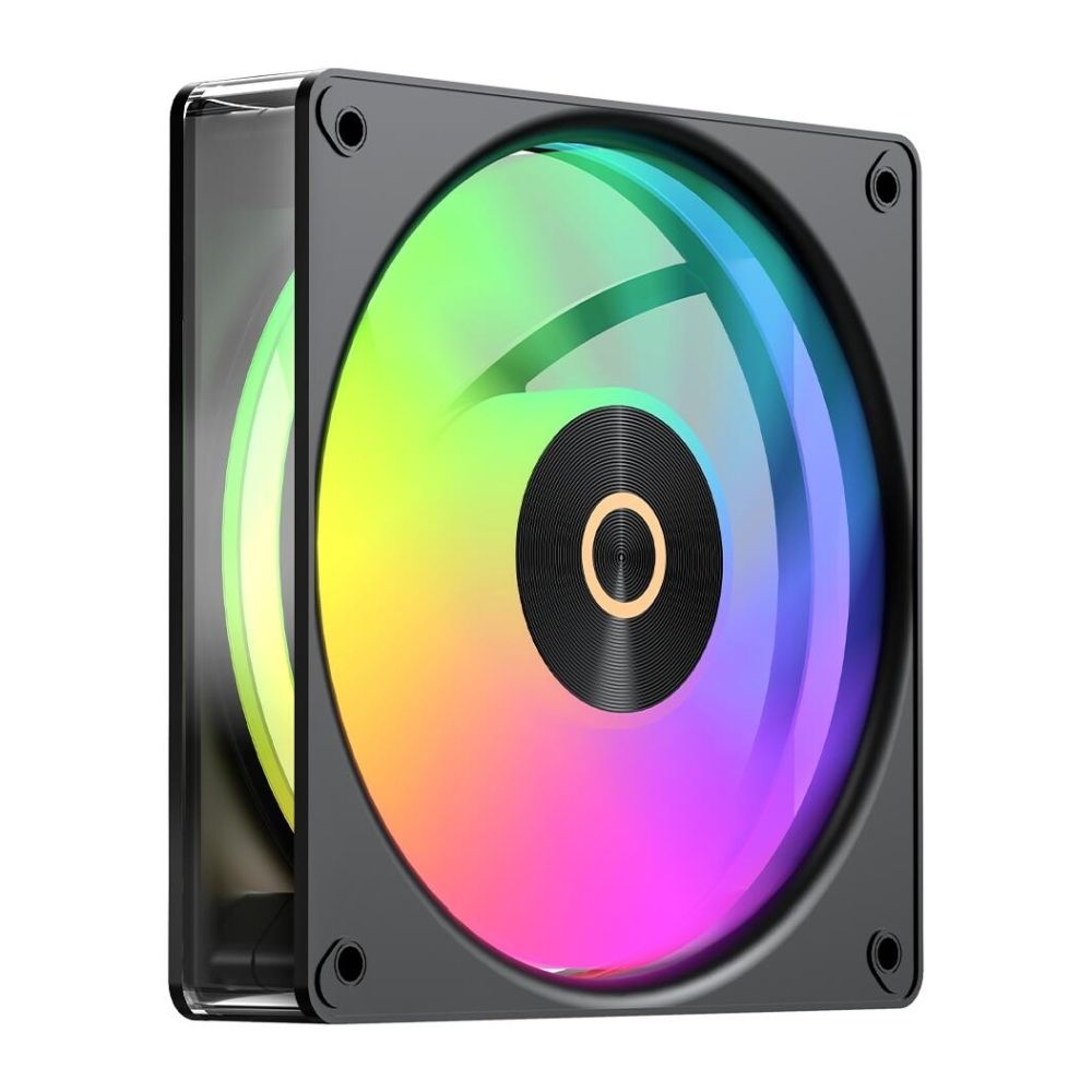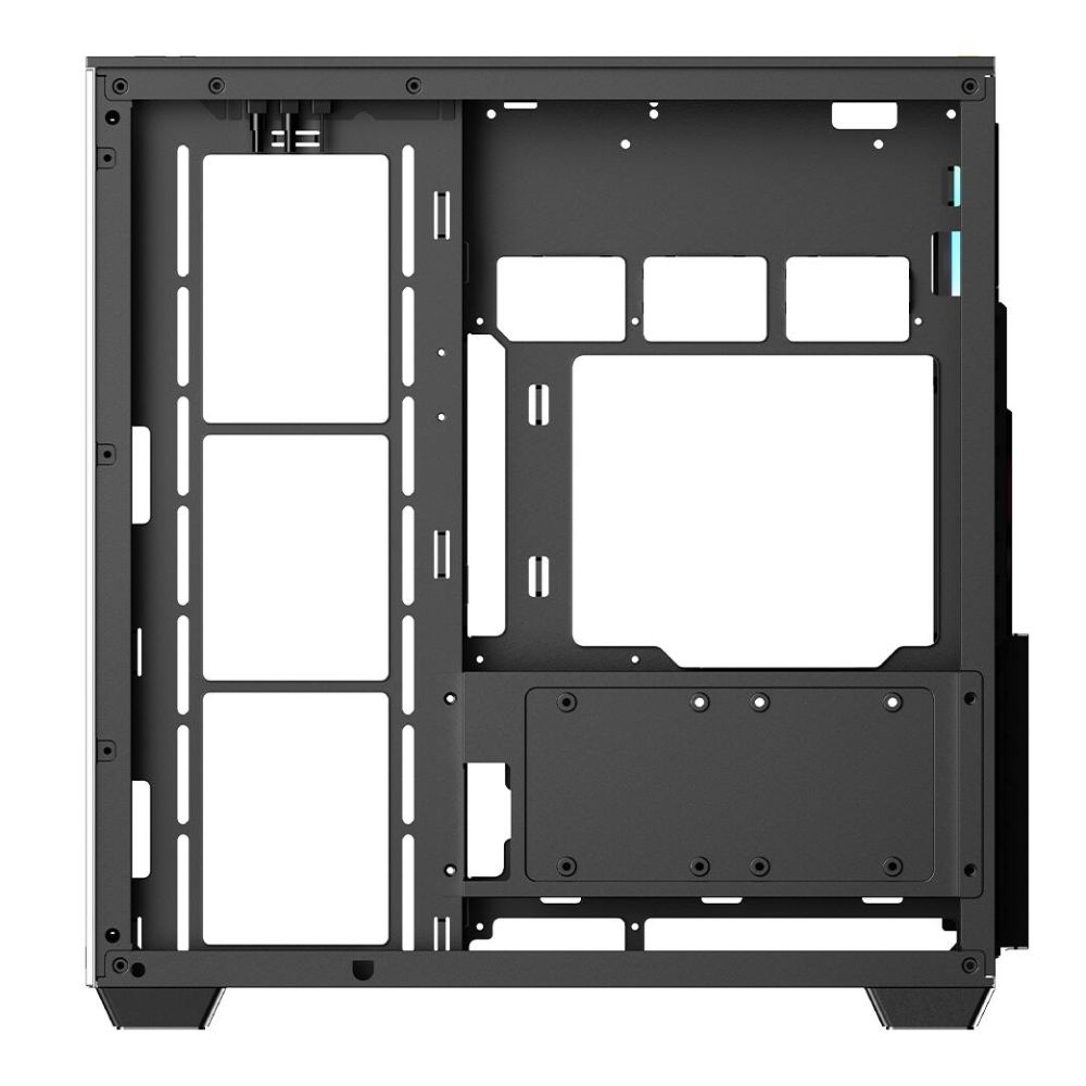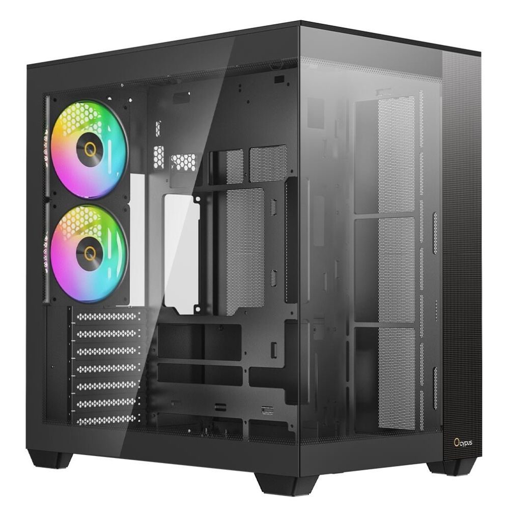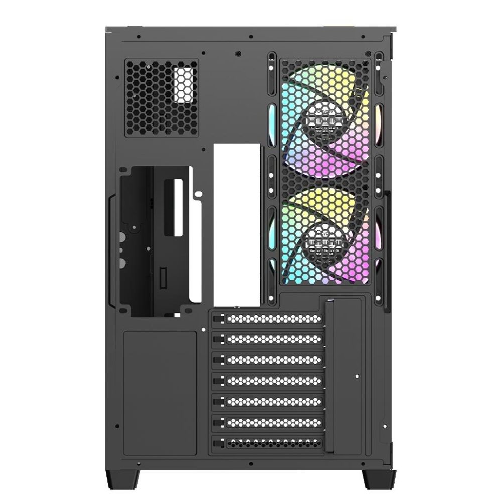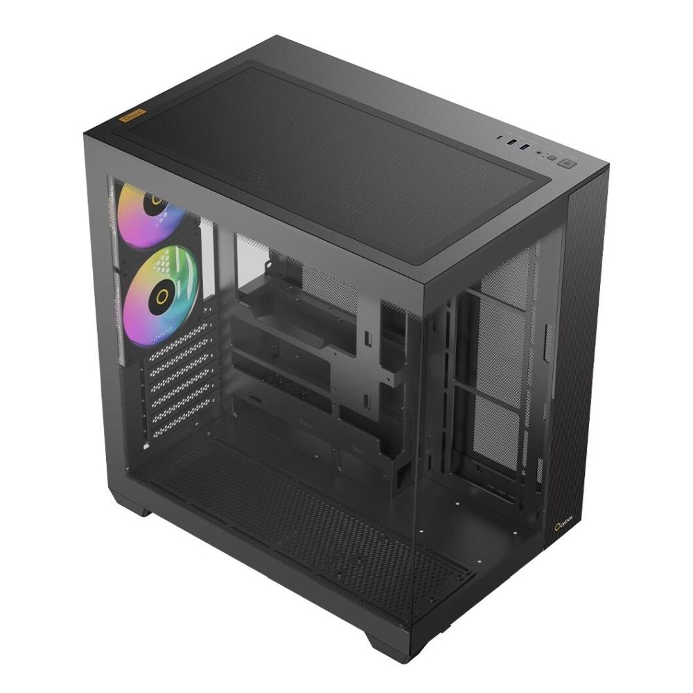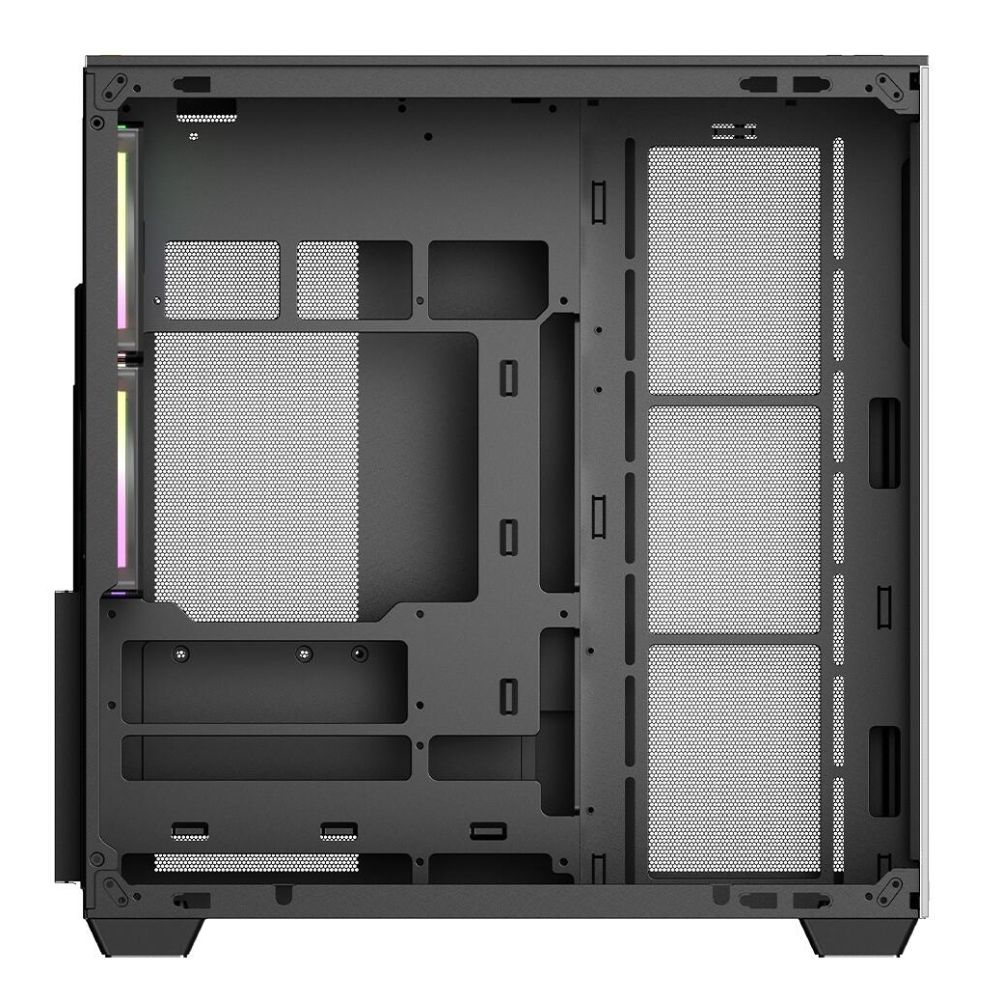 - Отличная вентиляция и эффектный внешний вид: корпус оснащён двумя ARGB-вентиляторами, которые не только эффективно охлаждают систему, но и создают красочную подсветку.