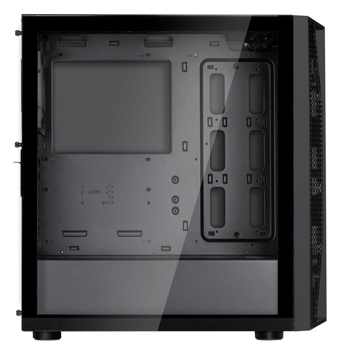 Корпус имеет стильный дизайн с прозрачной боковой панелью из закалённого стекла, что позволяет видеть внутренние компоненты компьютера. Корпус поддерживает установку блока питания формата ATX PS/2. Также в нём есть два отсека для установки накопителей формата 2,5".