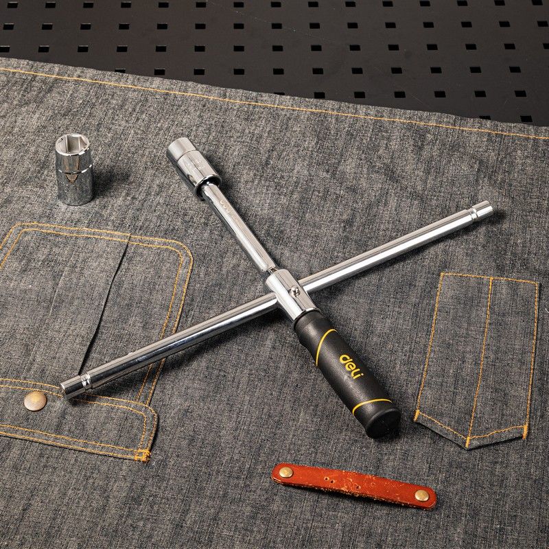 Крестообразный балонный ключ Deli DL4416K — это незаменимый инструмент для любого мастера или автолюбителя. Он изготовлен из высококачественной стали Cr-V, что обеспечивает его прочность и долговечность. Противоскользящая ручка обеспечивает удобный хват и контроль над инструментом во время работы.