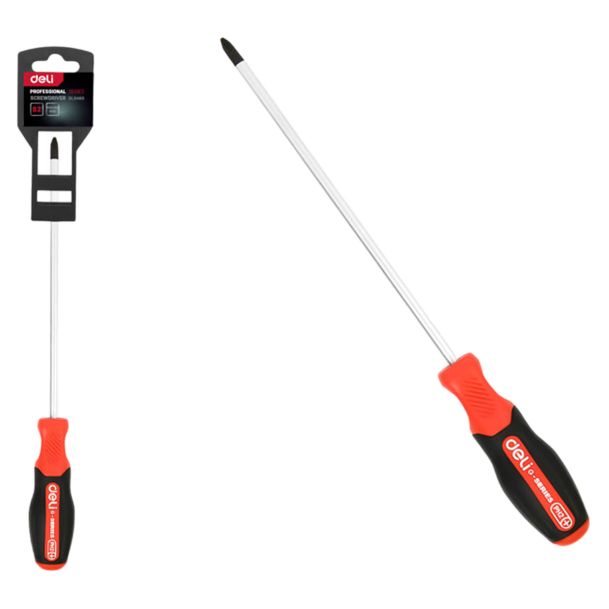 Крестовая DL3460 PH2x100мм сталь S2, матовый стержень, двухкомпонентная прорезиненная рукоять