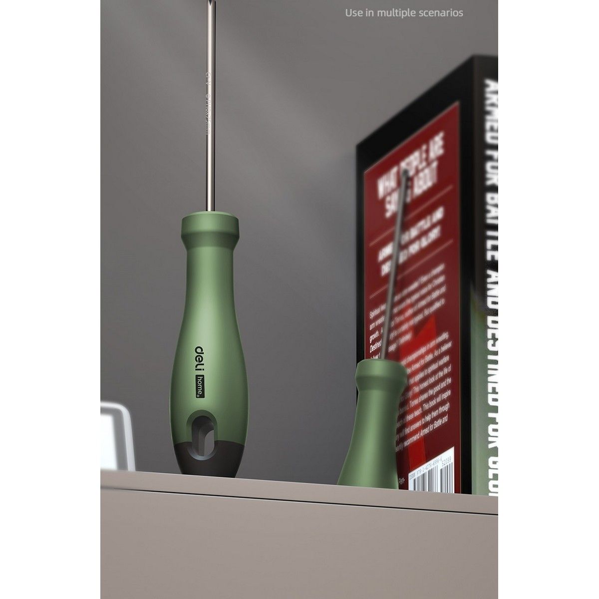Крестовая отвертка "Home Series Green" Deli HT1203L PH0x75мм Эксклюзивный дизайн, рукоятка из высококачественного софттач пластика