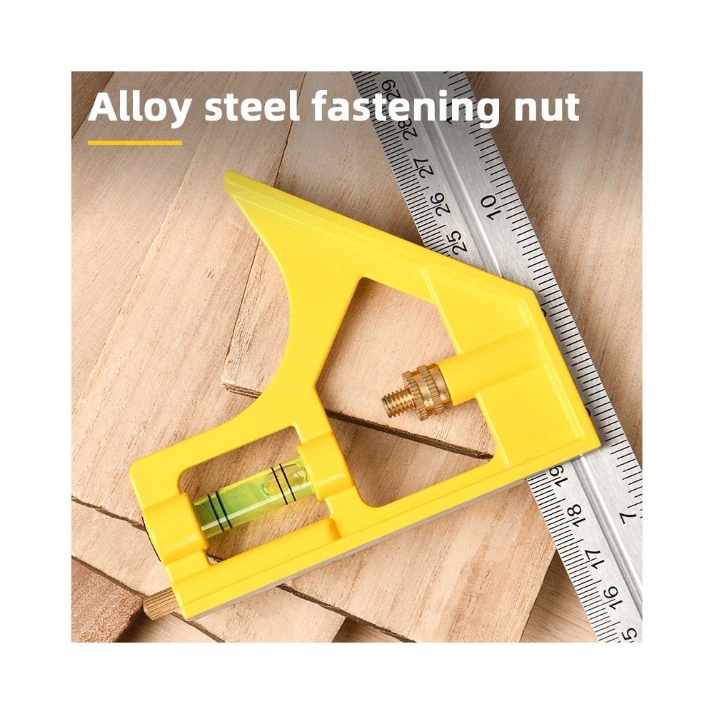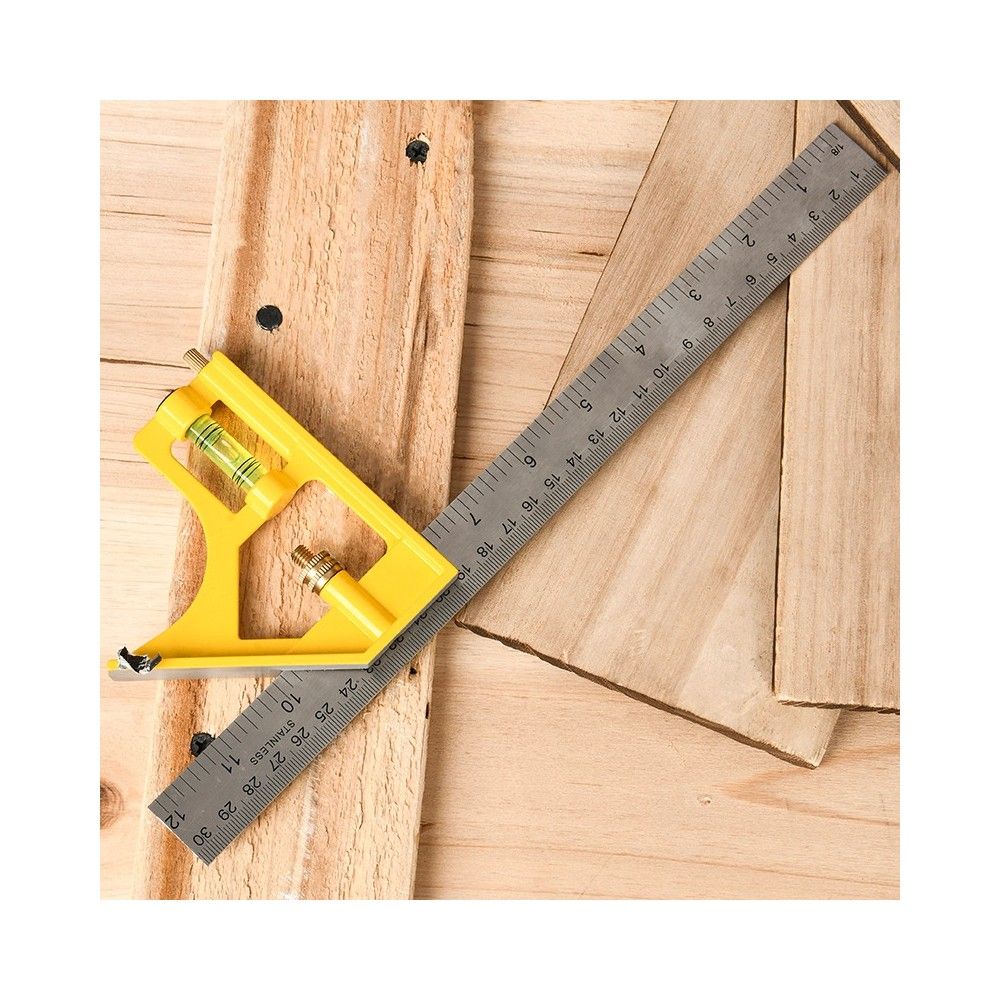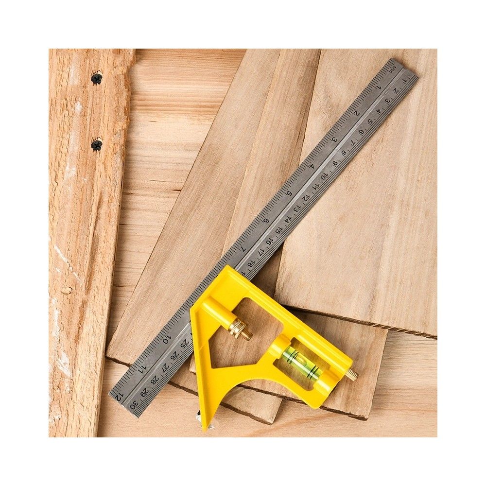 Линейка строительная с угольником и уровнем Deli DL7300Y 300мм, нержавеющая сталь, пузырьковый уровень