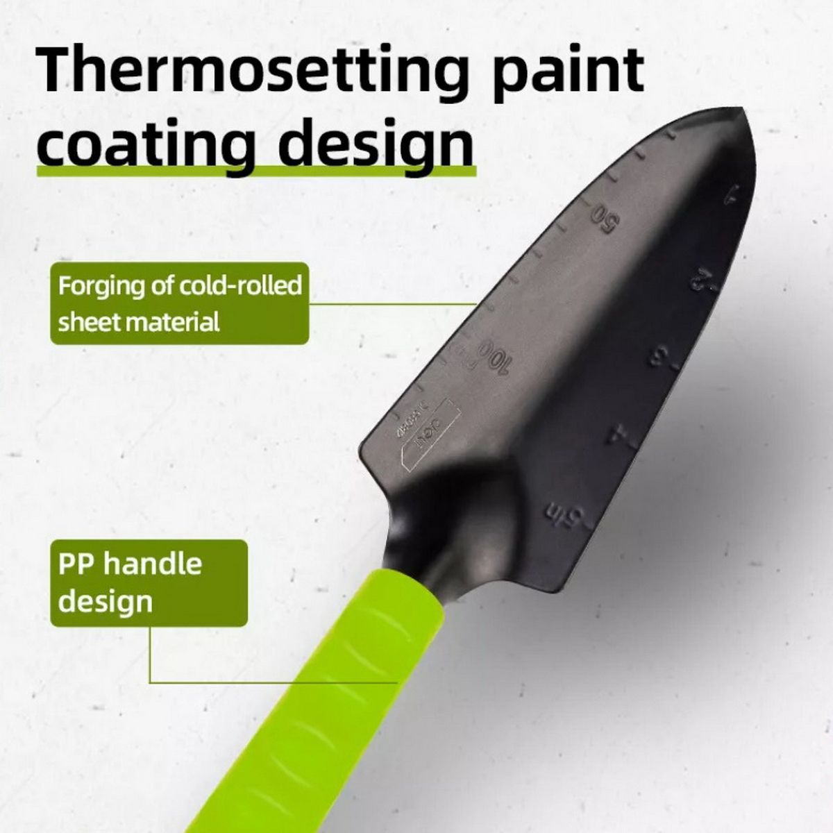 Холоднокатанная сталь толщиной 1.5мм. Термореактивная краска для защиты от ржавчины и коррозии. Противоскользящая рукоять