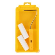 Набор для отделочных работ включает в себя ванночку и валик из акрилового волокна. Он предназначен для нанесения лакокрасочных материалов на различные поверхности.