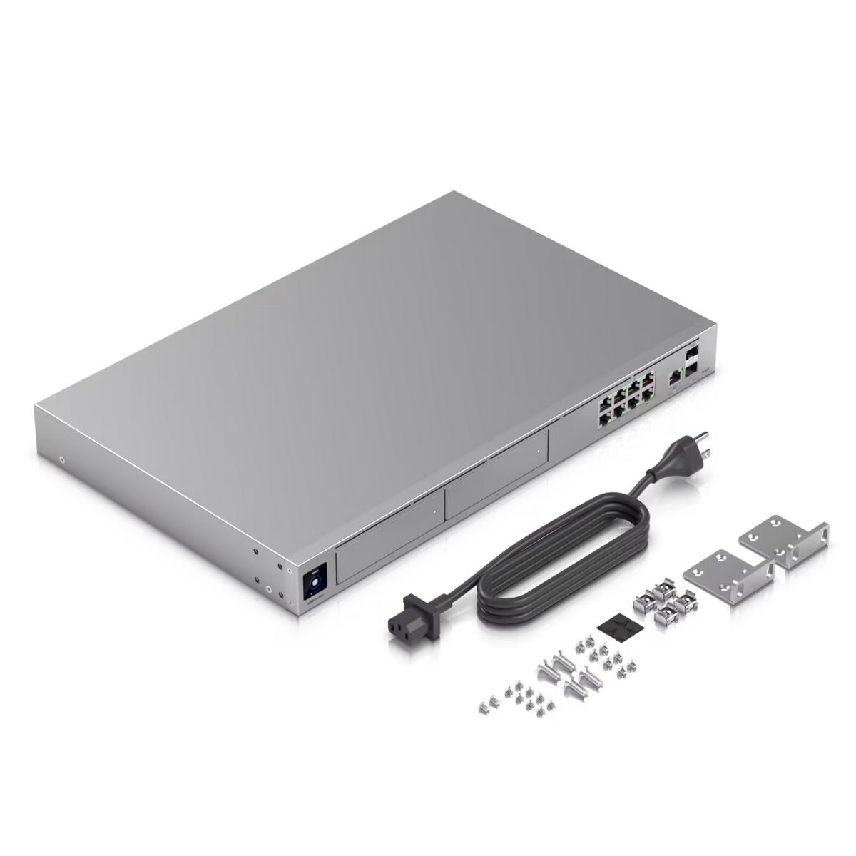 Работает как маршрутизатор, коммутатор или контроллер. LAN - 8x 1G RJ45, 1x 10G SFP+. WAN - 1x 2.5G RJ45, 1x 10G SFP+. Сенсорный дисплей 1.3". Возможность подключения резервного питания USP-RPS DC-in 11.5V/8.7A