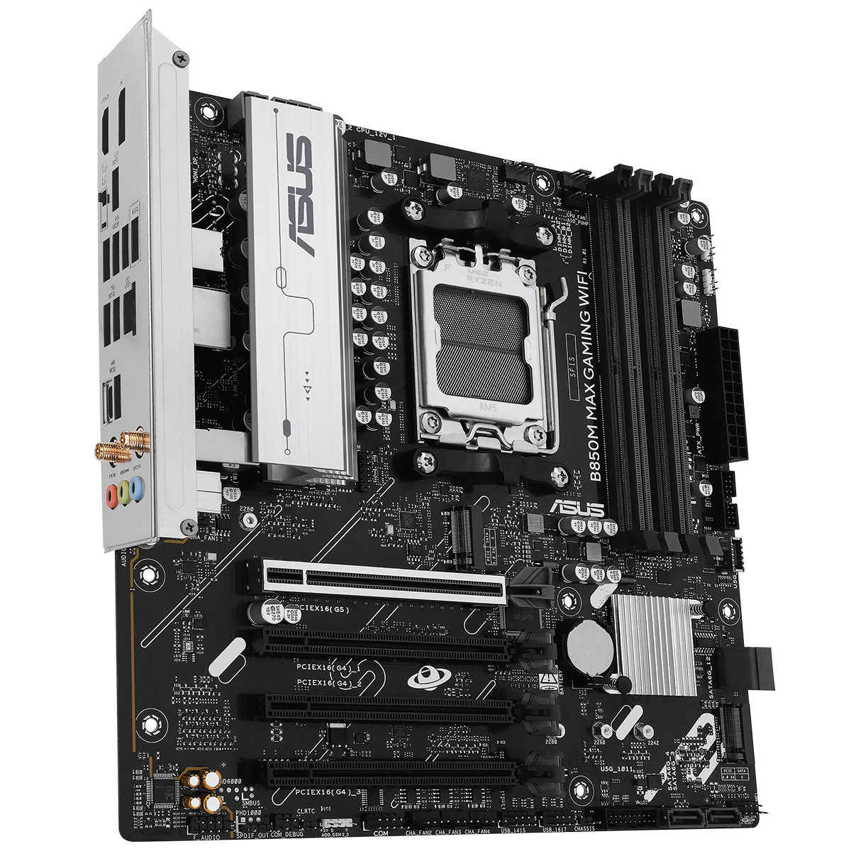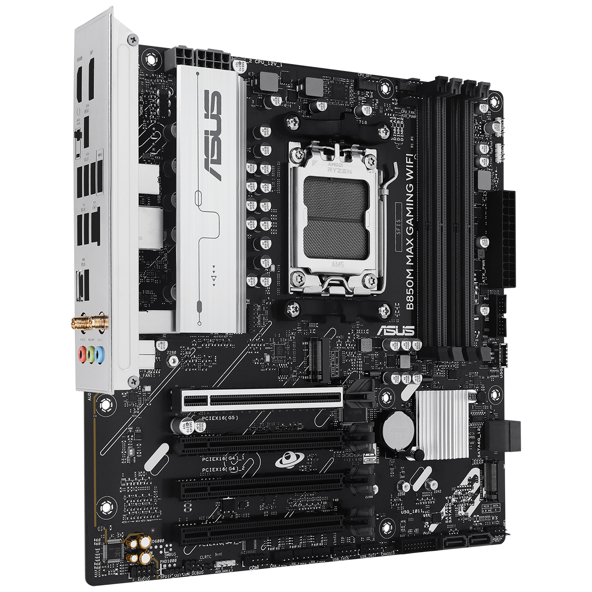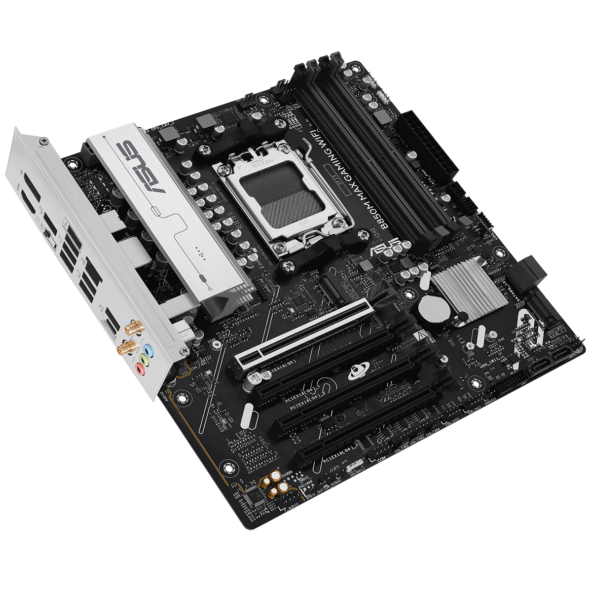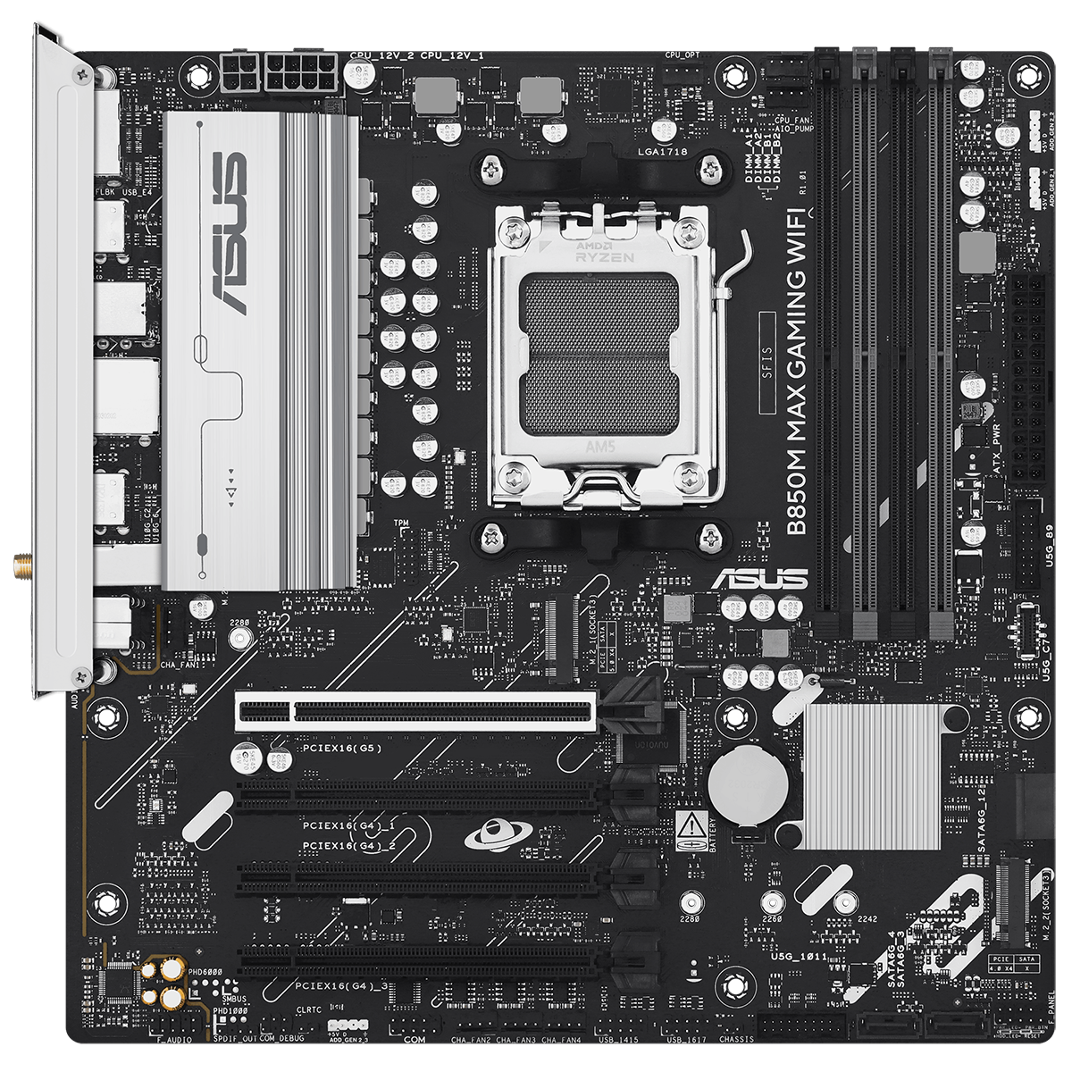 Материнская плата ASUS B850M MAX GAMING WIFI AM5 mATX 4xDDR5 4xPCIEx16 3xM.2 USB-C DP HDMI GLAN Wi-Fi 6