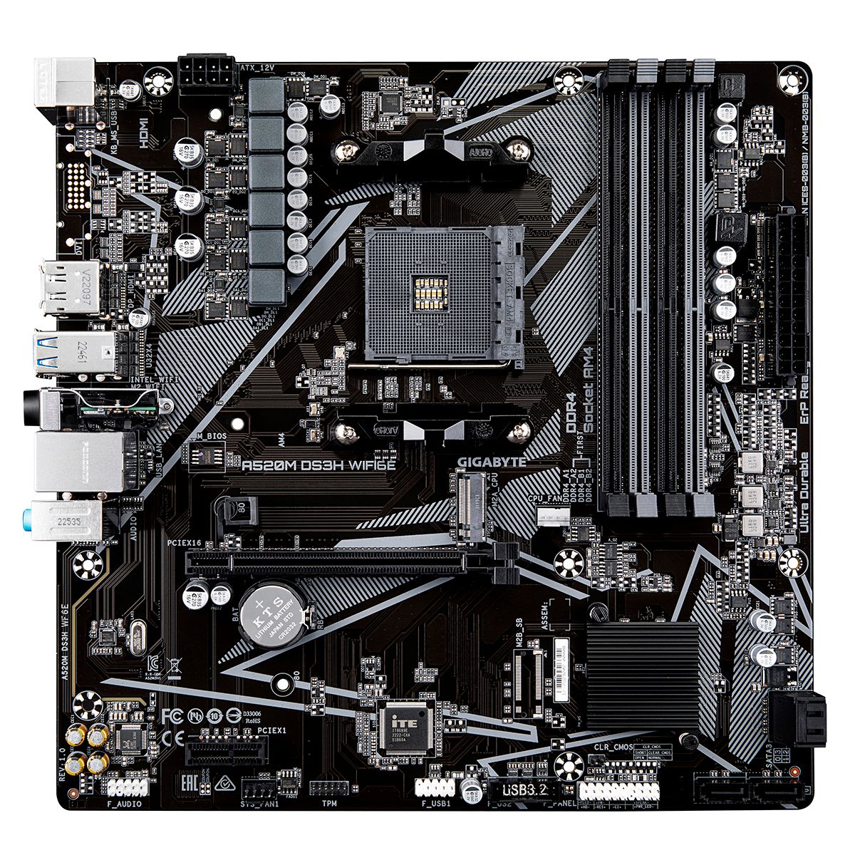 Материнская плата Gigabyte A520M DS3H WF6E A520, AM4, 4xDDR4, 1_PCI-Ex16,4_M.2, 6_USB3.2Gen1, 8_USB2.0, 4*SATA3.0, 1G, DP, HDMI, ATX, RTL
