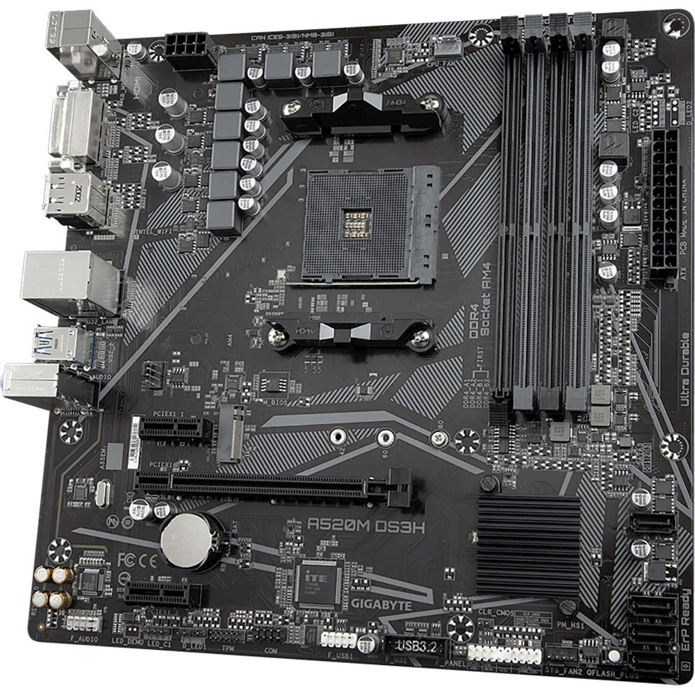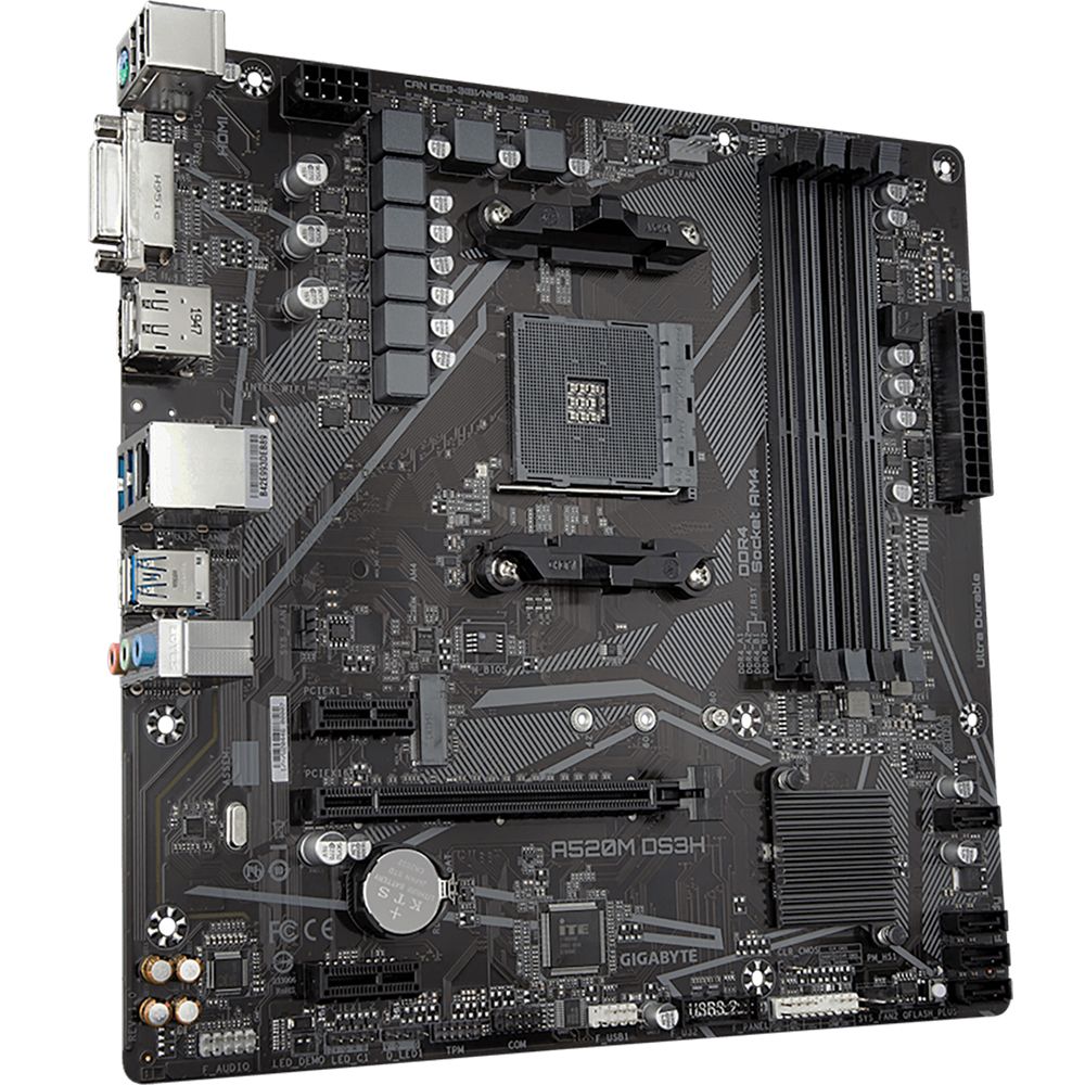 Материнская плата Gigabyte Bad Pack A520M DS3H, Socket AM4, AMD A520, 4xDDR4-3200, 0/1/10), 1xM.2, 8 Ch Audio, GLan, (2+2)xUSB2.0, (4+2)xUSB3.2, 1xPS/2, mATX, RTL {10}DVI-D+HDMI+DP, 1xPCI-Ex16, 2xPCI-Ex1, 4xSATA3(RAID