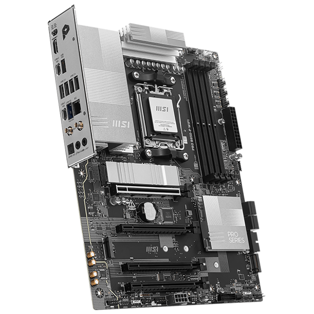 Материнская плата MSI PRO B850-P WIFI B850, AM5, 4*DDR5, 4*PCIEx16, 3*M.2, 3*TypeC, 1*USB3.2Gen2, 5*USB3.2Gen1, 8*USB2.0, 4*SATA3.0, 5G, HDMI, ATX, RTL
