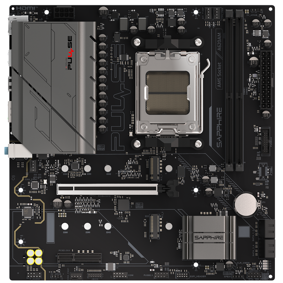 Материнская плата Sapphire A620AM PULSE A620, AM5, 2*DDR5, 1*PCIEx16, 1*PCIEx4, 2*M.2, 4*USB3.2Gen1, 6*USB2.0, 4*SATA3.0, 1G, DP, HDMI, M-ATX, RTL