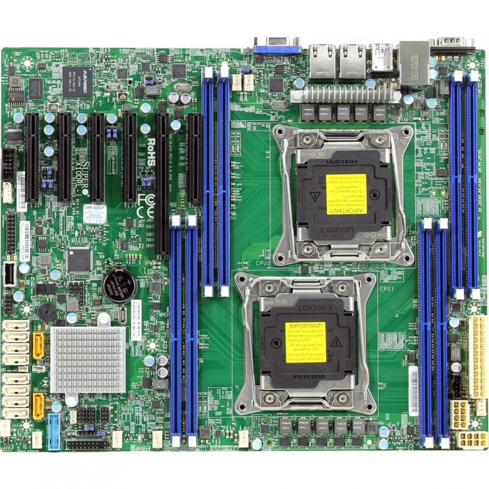 Материнская плата SuperMicro MBD-X10DRL-I-B, OEM ATX 8x 288-pin DDR4 DIMM slots LGA 2011 10x SATA3 (6Gbps) ports 4x USB 3.0 ports (2 rear + 2 via header) 5x USB 2.0 ports (2 rear + 2 via header + 1 Type A) 3 PCI-E 3.0 x8 1 PCI-E 3.0 x16 1 PCI-E 3