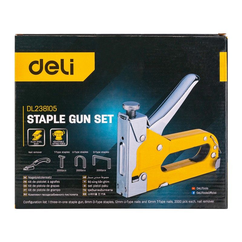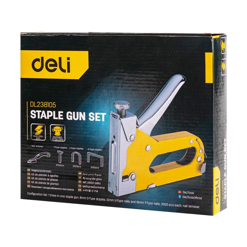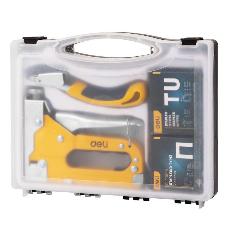 Мебельный степлер Deli DL238105 с набором скоб + антистеплер Набор: 2000шт D-тип. 2000шт Т-тип. 2000шт U-тип, 1шт скобоудалитель.