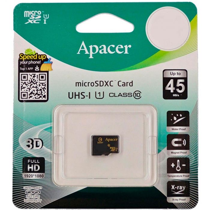 Apacer Memory Card AP128GMCSX10U1-RA совместима с большинством устройств, поддерживающих формат microSDHC. Карта памяти поставляется в комплекте с адаптером, позволяющим использовать её в устройствах с разъёмом SD.