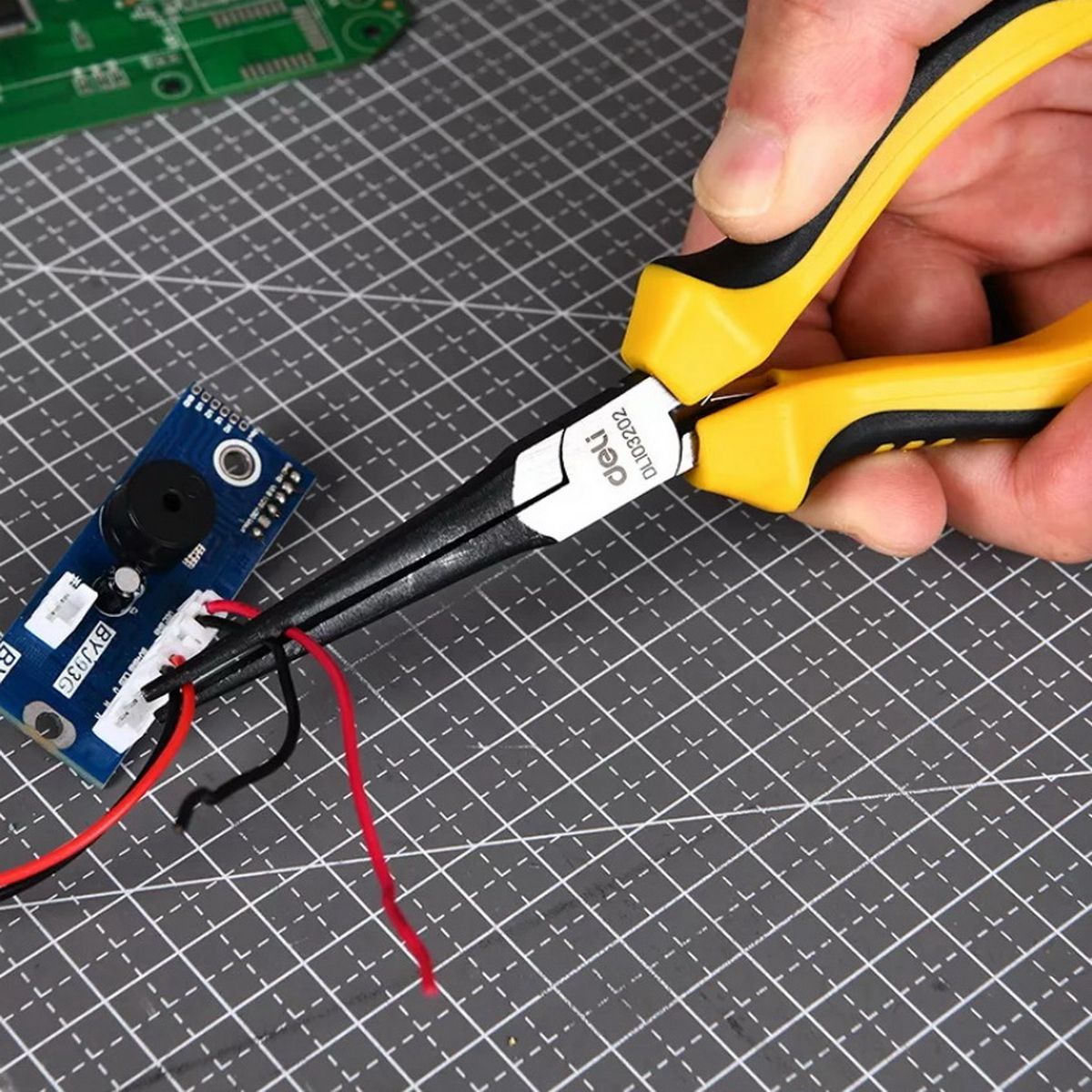Мини-тонкогубцы Deli — это незаменимый инструмент для выполнения точных работ. Они идеально подходят для захвата и удержания мелких деталей, а также для работы в труднодоступных местах.