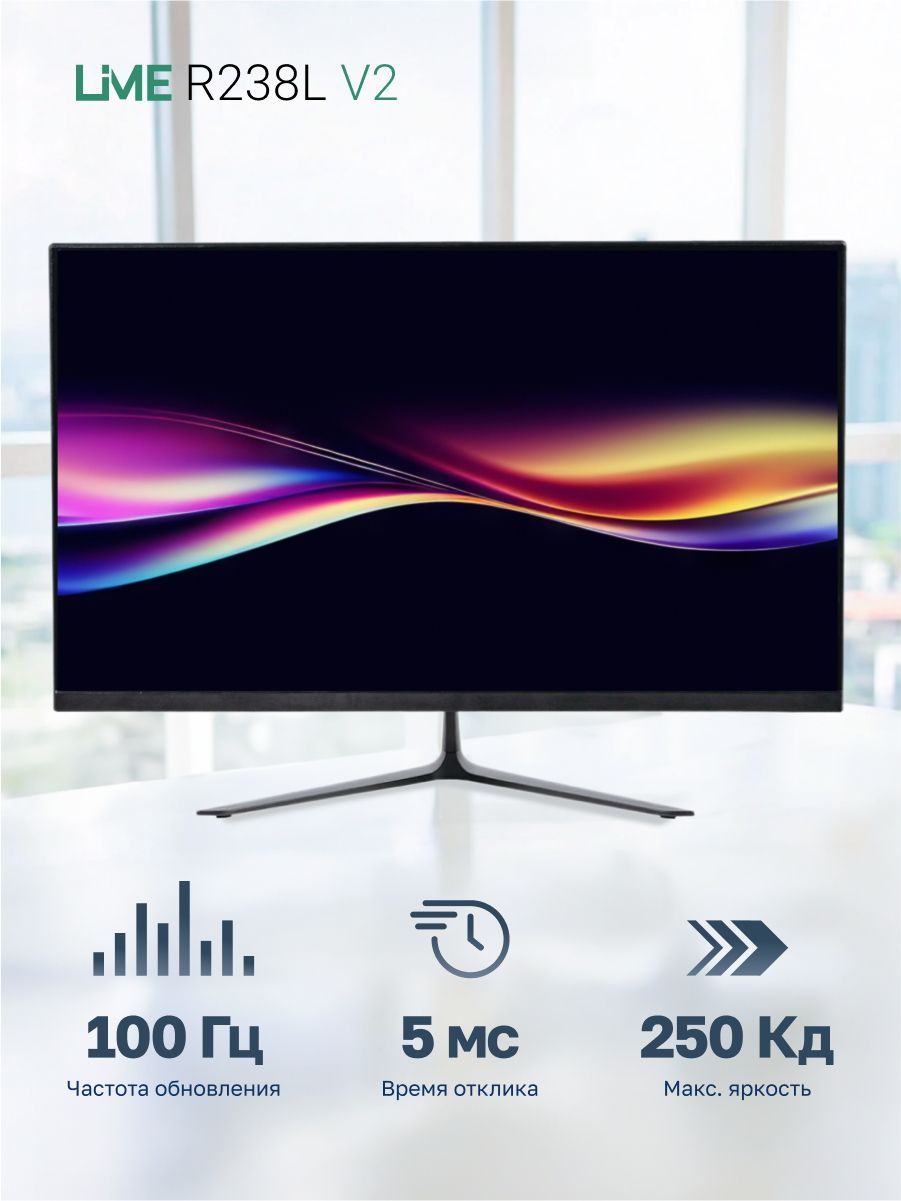Монитор 23.8" Lime R238L V2 IPS, 1920x1080, 100Hz, 5ms, 250сd/m, 1000:1 | VGA , HDMI(1.4) | ExPSU, Vesa 100, Black