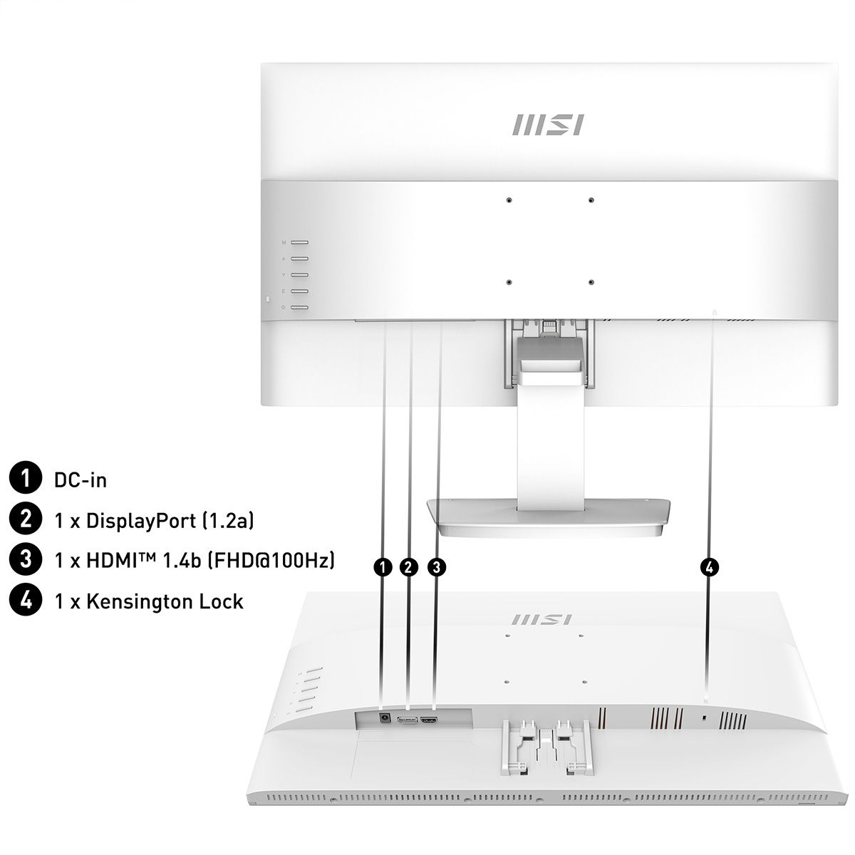 Монитор 23.8" MSI PRO MP2412W VA, 1920x1080, 100Hz, 4ms, 250сd/m, 3000:1, | HDMI(1.4b), DP(1.2a) | ExPSU, Vesa 75, White
