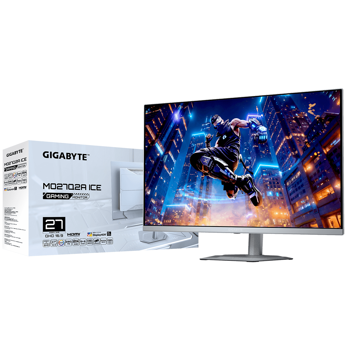 Монитор 26.5" Gigabyte MO27Q2A EK ICE (QD-OLED, 2560x1440, , 0,03 ms, 178°/178°, 250 cd/m, 1,5 млн: 1, 3xUSB3.0, USB Type-C, 280Hz, 2xHDMI 2.1, DP 1.4, Pivot)