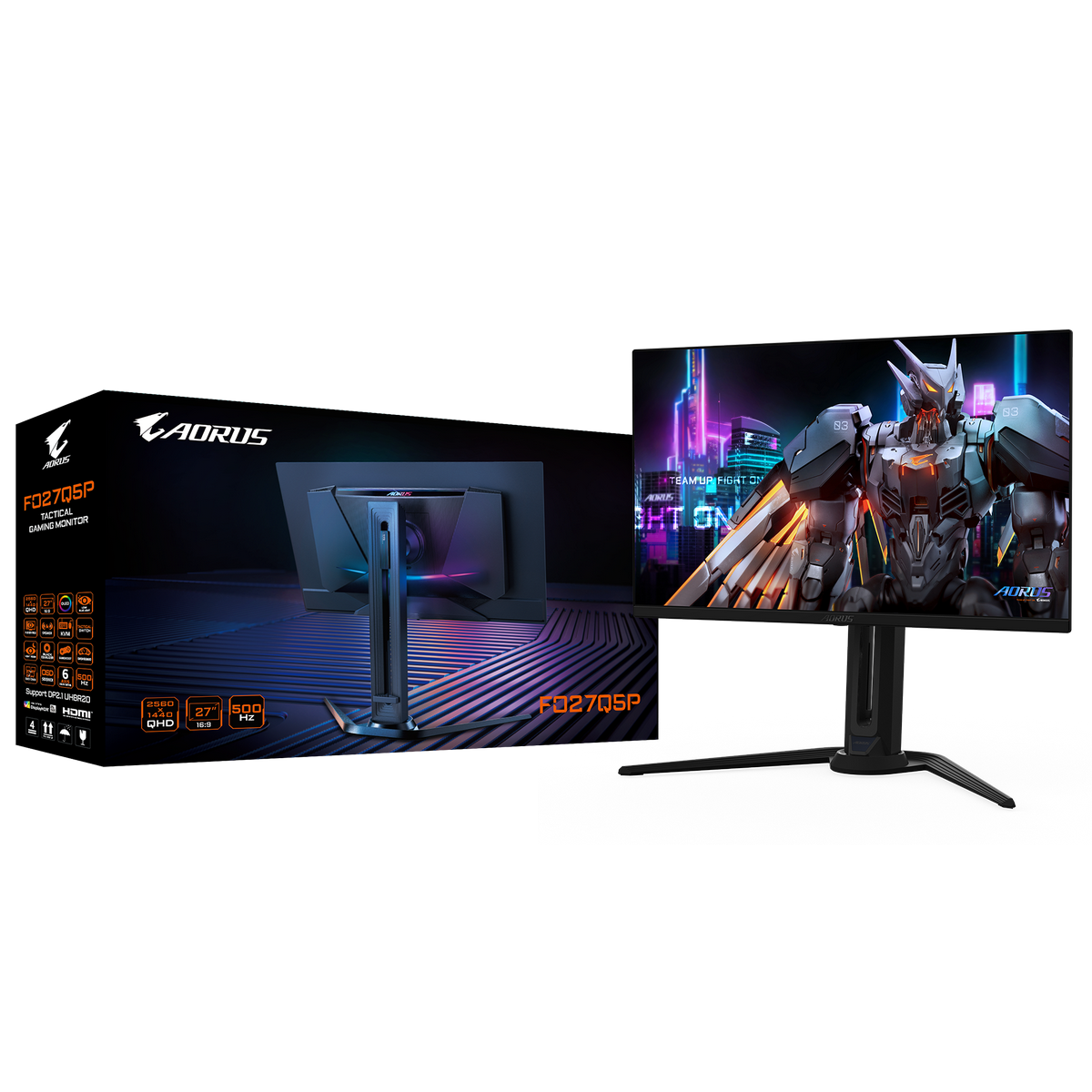 Монитор 27" Gigabyte AORUS FO27Q5P EK Black (QD-OLED, 2560×1440, 500Hz, 300 cd/m, 1,5M:1, 2xHDMI 2.1, DP 2.1 UHBR20, 1x MiniDP 2.1 UHBR20, DP 1.4 (HBR3) выход 3xUSB 3.2, USB Type-C)