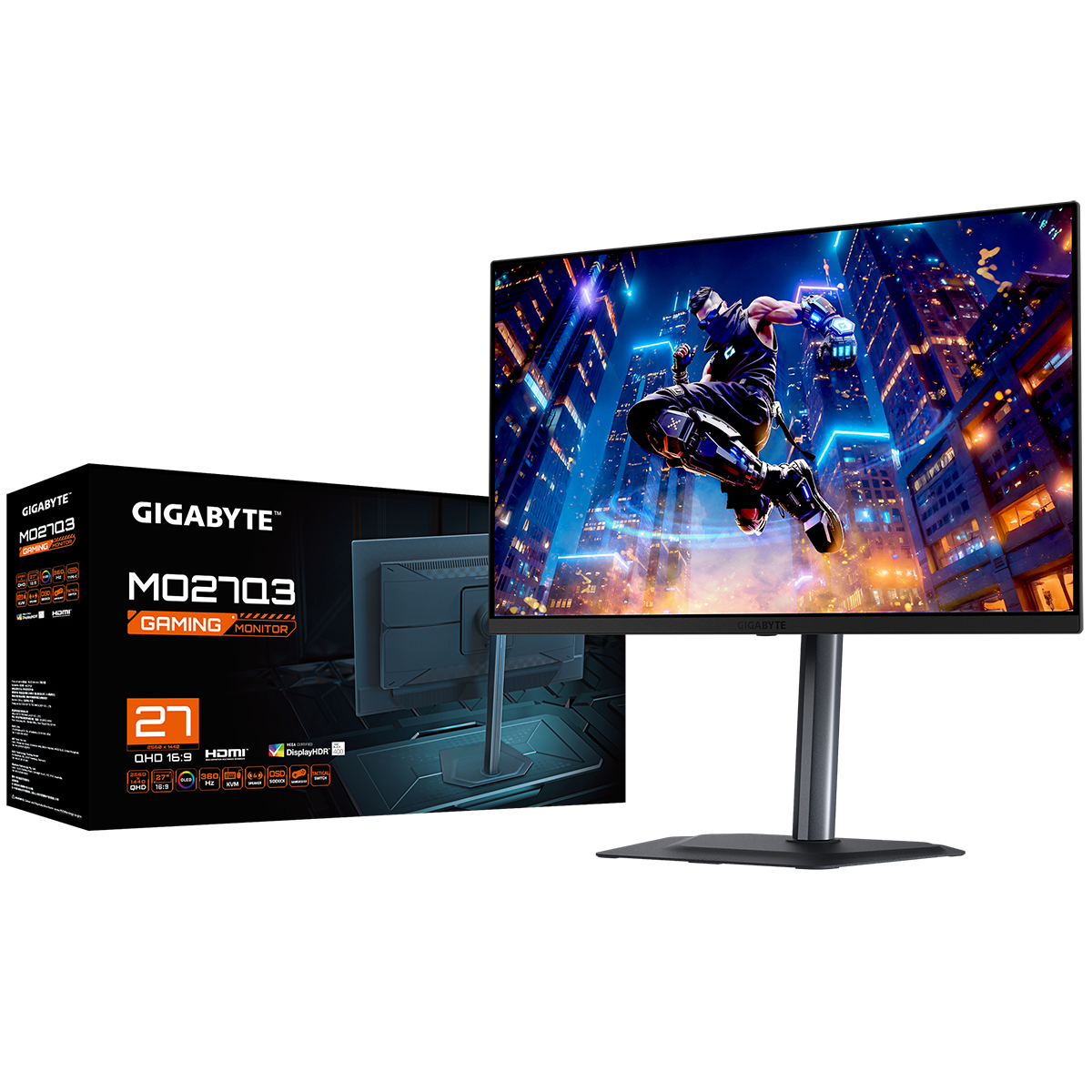 Монитор 27" Gigabyte MO27Q3 EK Black (QD OLED, 2560 x 1440, 360Hz, 0,03ms, 250cd/m->1000(пиковая), 1500:1, 2xHDMI-2.1, DP-1.4, 3xUSB3.2, USB Type-C(18Вт),Pivot