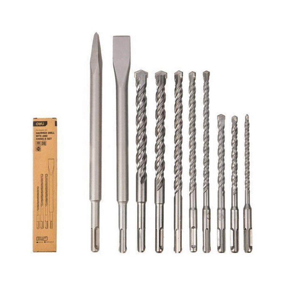 Набор буров и долот SDS Plus для перфоратора (10 предметов) Deli DH-YCZ010-EH1 (Буры 6x160, 8x160, 10x160, 8x210, 10x210, 12x210, 14x210, 16x210; Долота 14x250, 14x250x20)