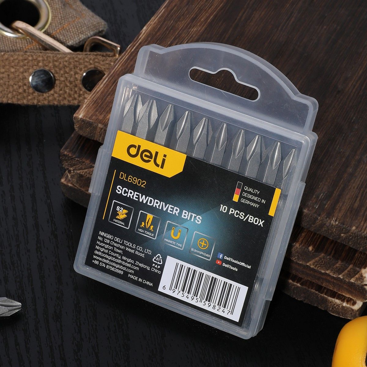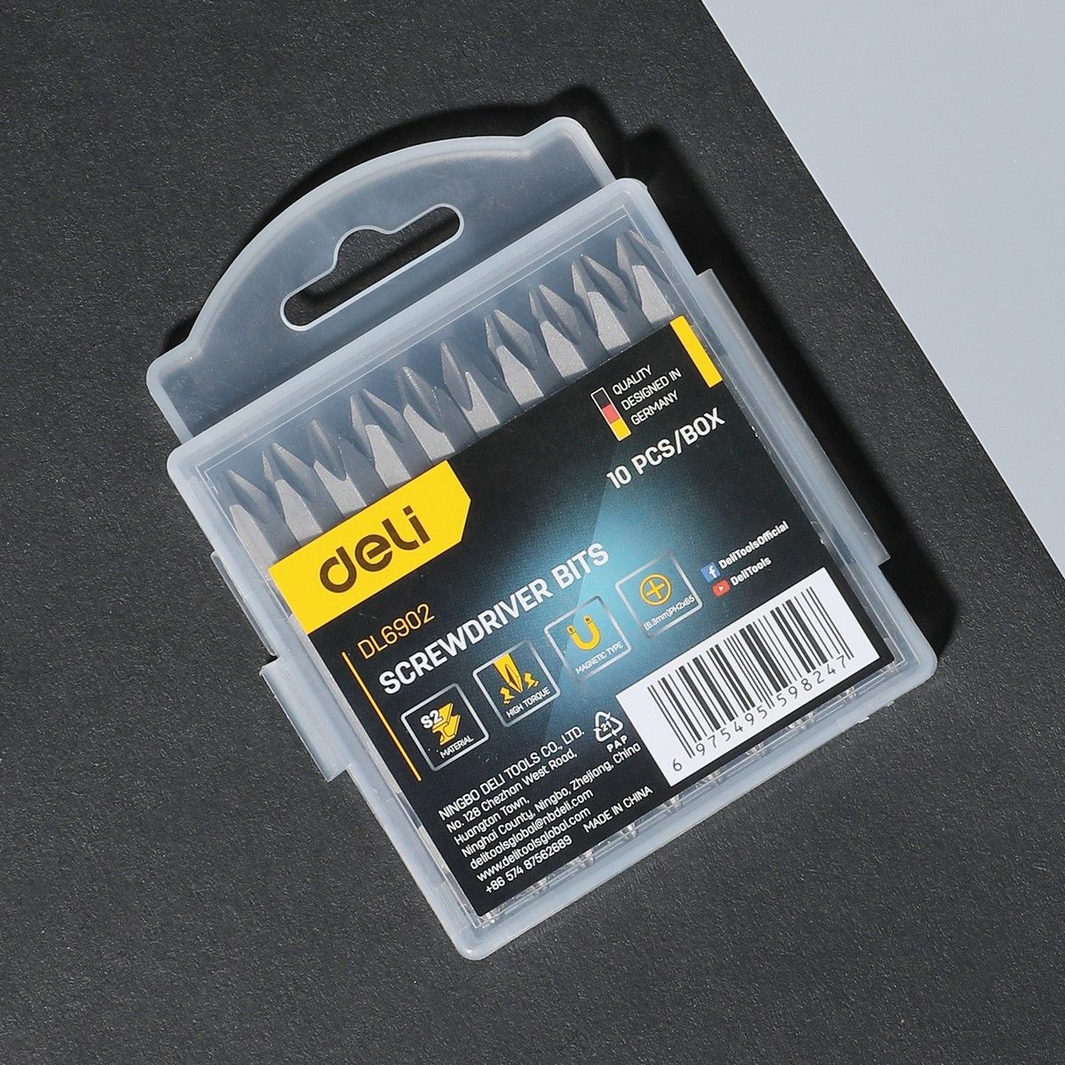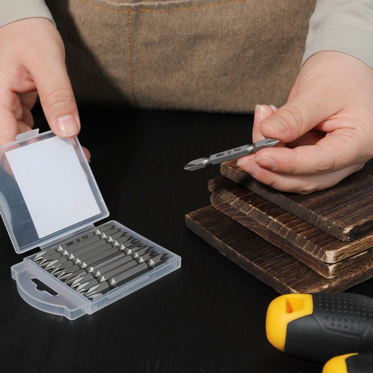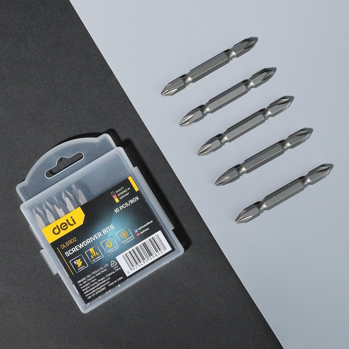 Набор Deli двухсторонних бит 10 шт DL6902 PH2*65мм, сталь S2 с твердостью 58-60HRC, пласт.кейс