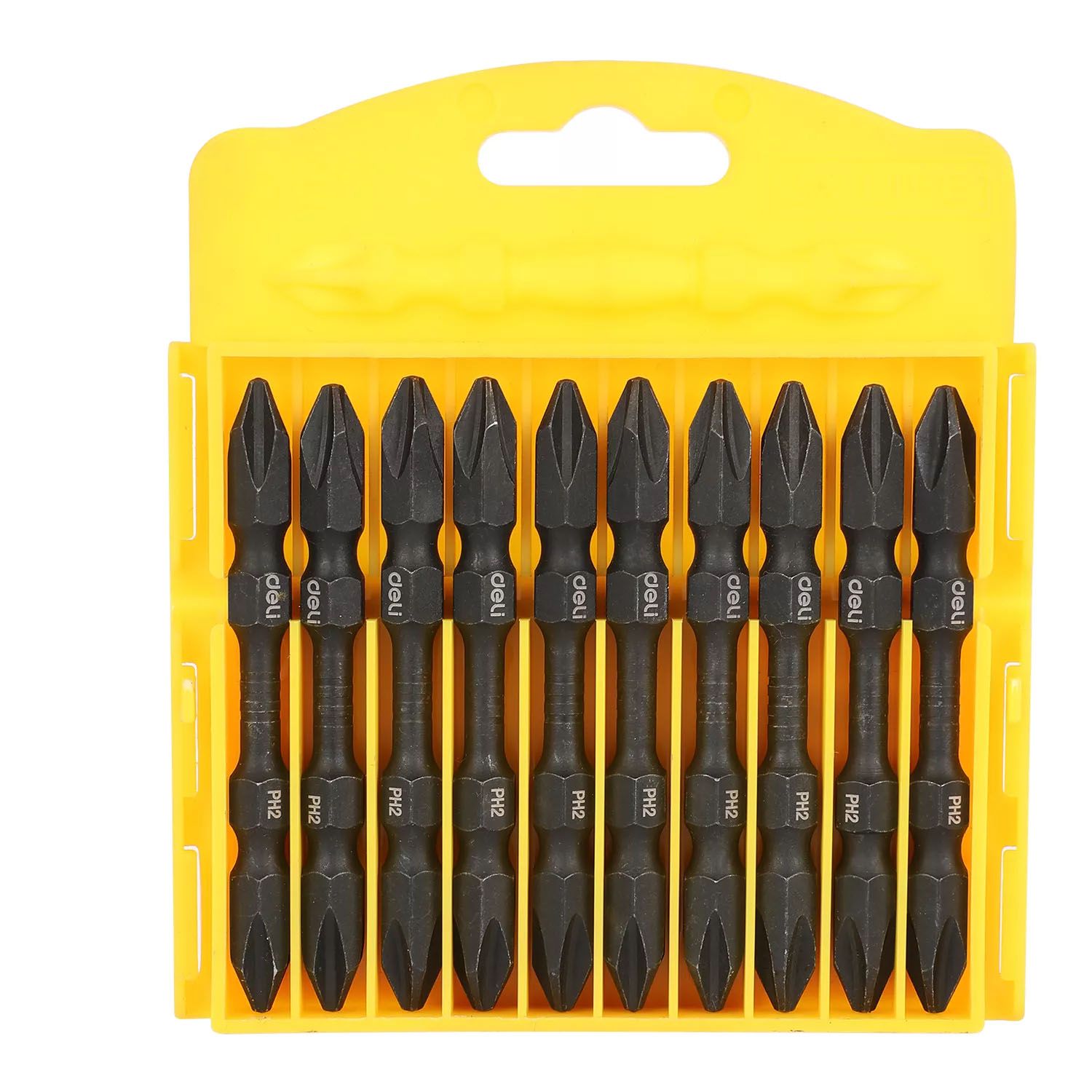 Набор Deli двухсторонних торсионных бит для ударных шуруповертов 10 шт DL252202 PH2*65мм, сталь S2, пласт.кейс