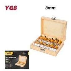 Набор фрез по дереву 12 шт Deli DH-MXD008-EH1 хвостовик 8мм, деревянный кейс