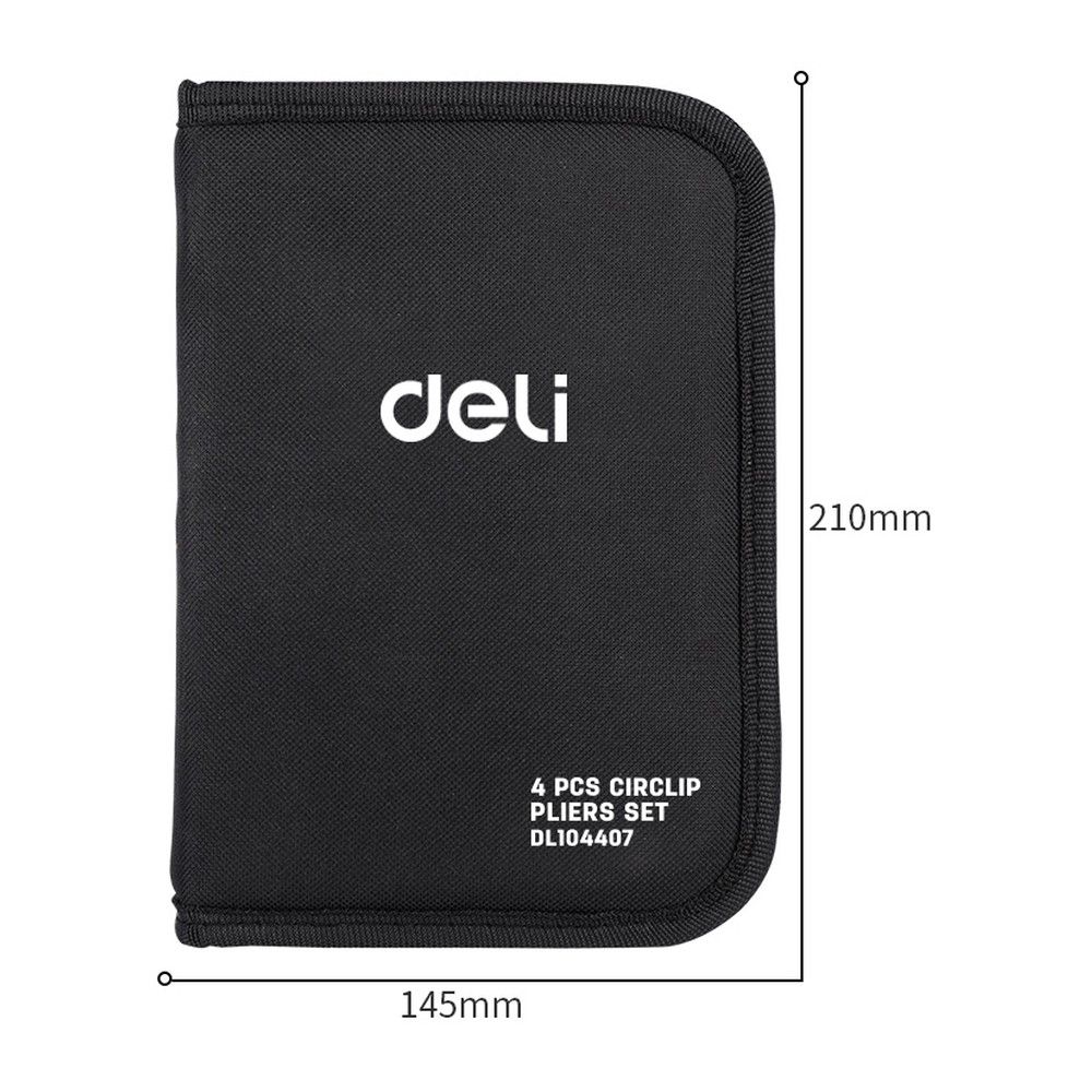 Набор из 4-х съемников стопорных колец Deli DL104407 175мм, сталь HRC50-54, прорезиненная рукоять, чехол на молнии из ткани Оксфорд
