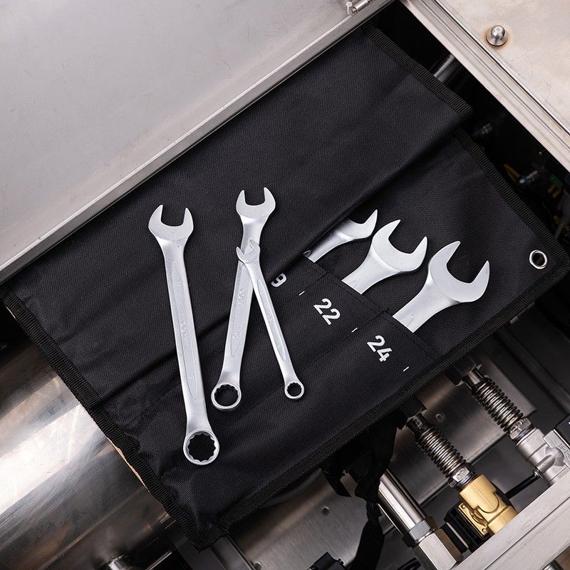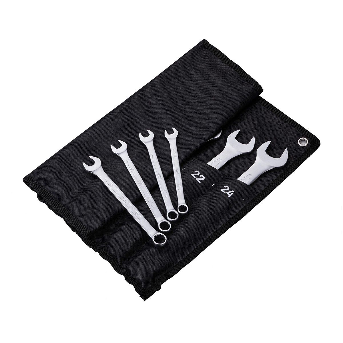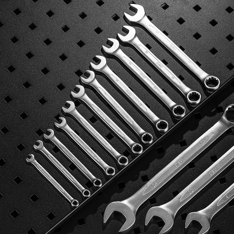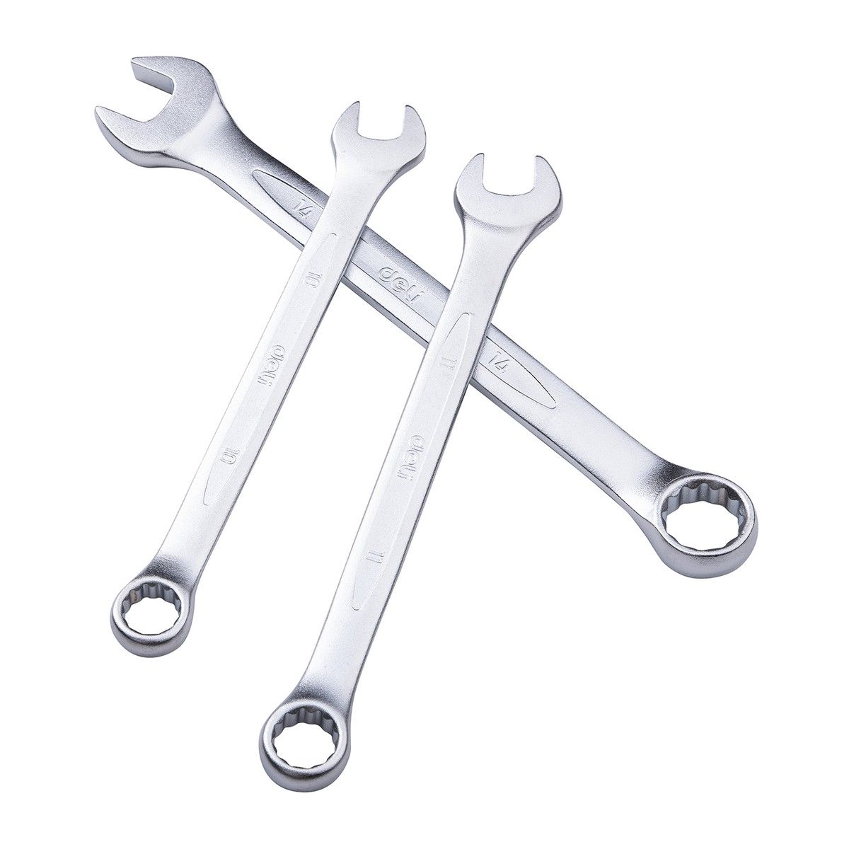Набор комбинированных гаечных ключей 14 шт Deli DL130014A (размеры 6,7,8,9,10,11,12,13,14,15,17,19,22,24 мм, матовая хромированная поверхность, чехол из ткани Оксфорд)