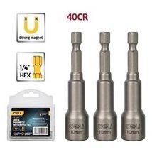 Набор магнитных бит с торцевой головкой 3шт Deli DL4810T 10мм, длина 65мм, сталь 40Cr, пласт. кейс