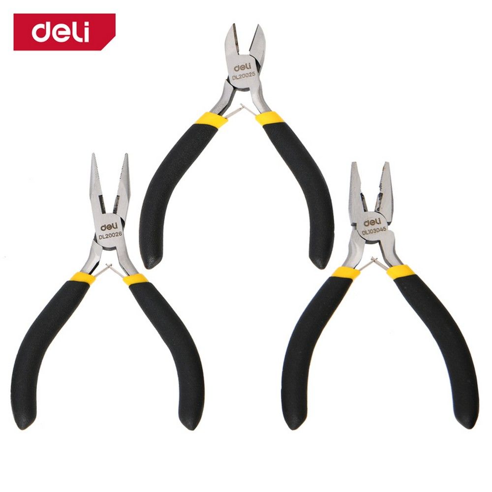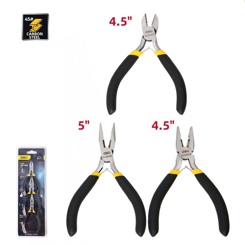 Набор мини-плоскогубцев Deli DL103205-3 (комбинированные плоскогубцы 115мм, удлиненные плоскогубцы 125мм, диагональные бокорезы 110мм, прорезиненная ручка)