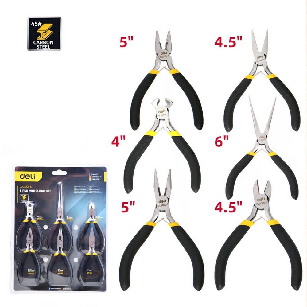 Набор мини-плоскогубцев Deli DL103205-6 (6 предметов, прорезиненная ручка) Bad Pack