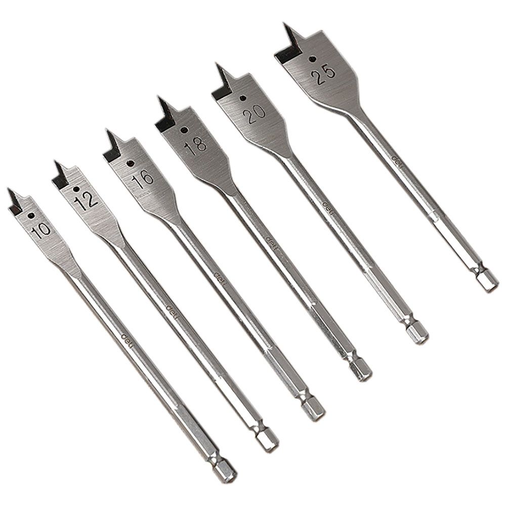 Набор Deli перовых сверл по дереву 6 шт (10/12/16/18/20/25мм) DH-MBZ006-ED1 длина 150мм, 1/4", блистер