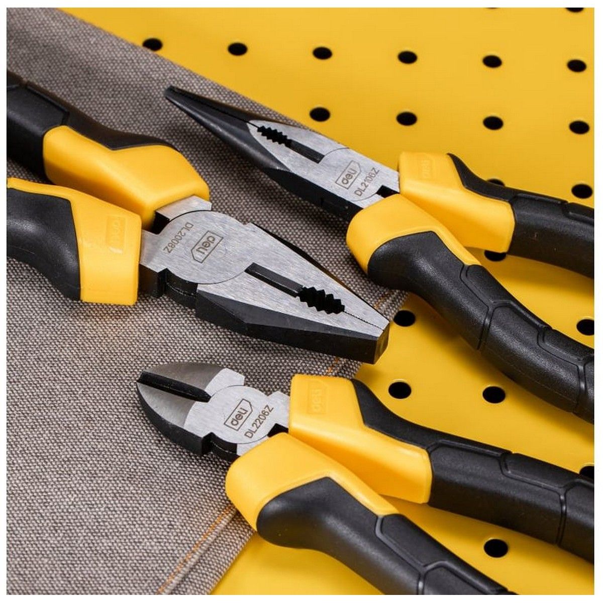Набор плоскогубцев Deli DL2008Z-3 200мм комбинированные плоскогубцы, 170мм длинногубцы, 170мм бокорезы, сталь Cr-V, двухкомпонентная прорезиненная рукоятка