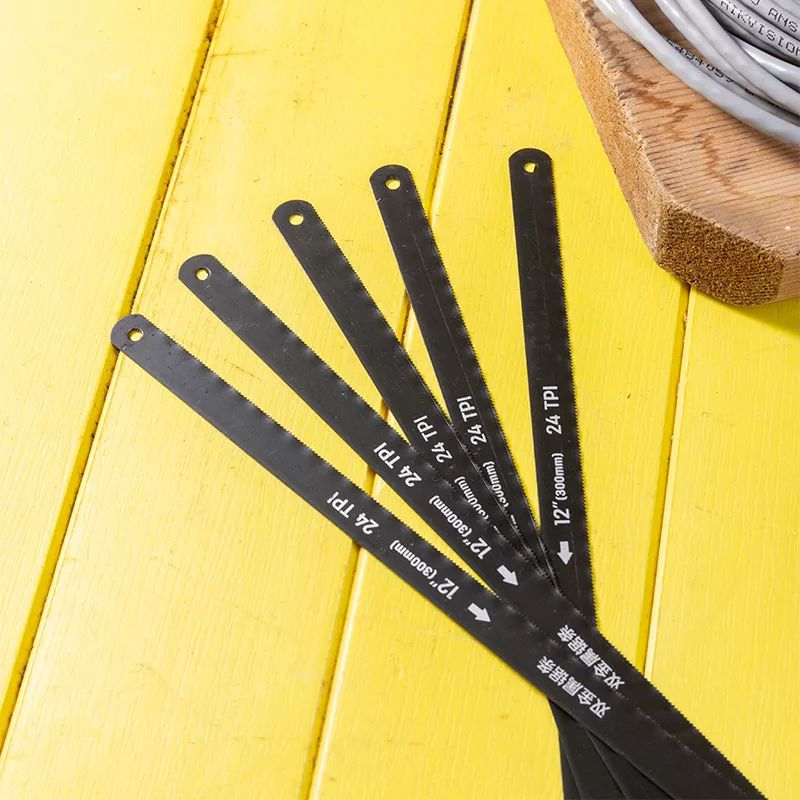 Набор Deli DL4673 состоит из пяти биметаллических полотен длиной 300 мм с зубьями 24 TPI.