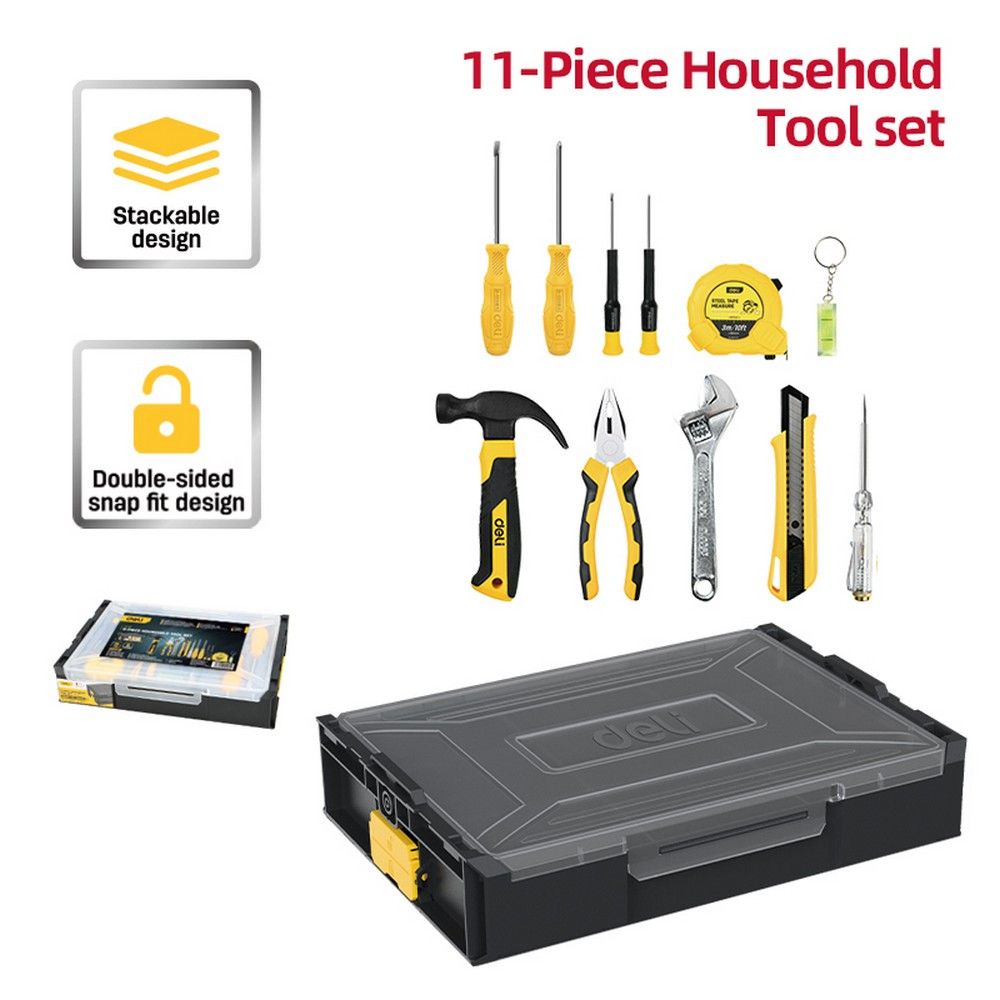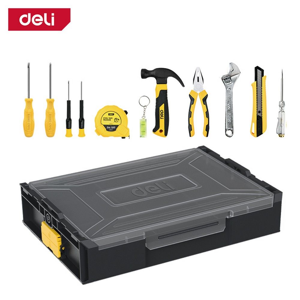 Набор ручного инструмента 11 предметов Deli DL1211 штабелируемый пластиковый ящик