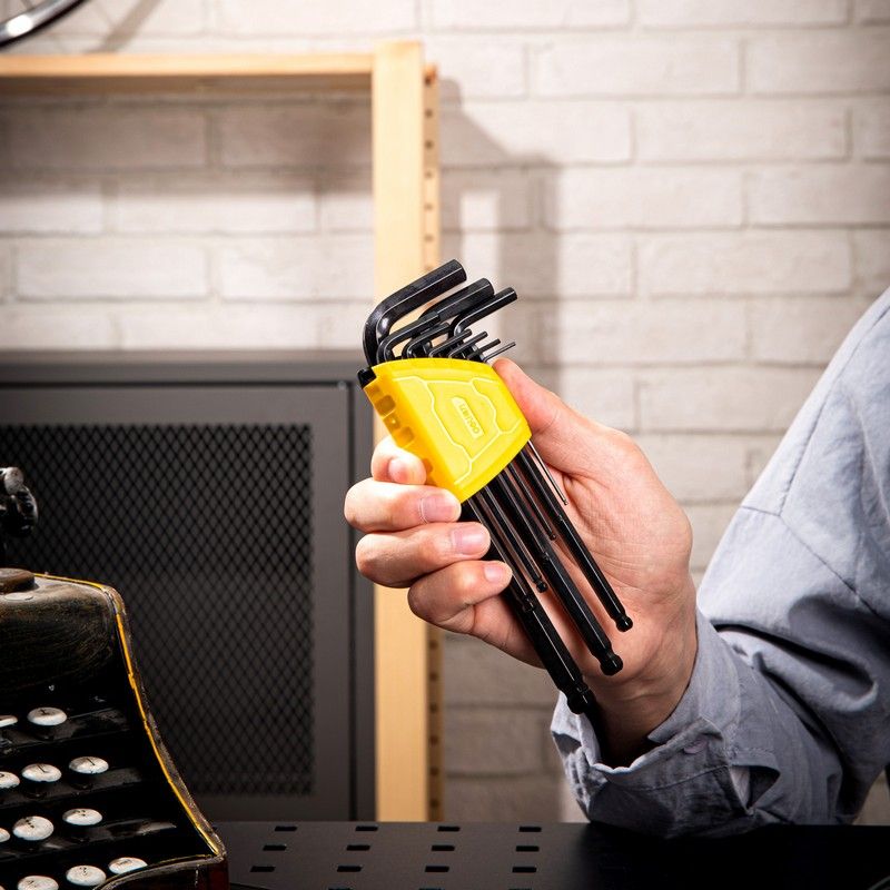 Набор шестигранных удлинённых ключей Deli предназначен для работы с крепёжными элементами, имеющими внутренний шестигранник. Ключи изготовлены из прочного материала, что обеспечивает их долговечность и надёжность в использовании. Благодаря наличию шара на конце ключа, можно работать под углом, что может быть полезно в труднодоступных местах.