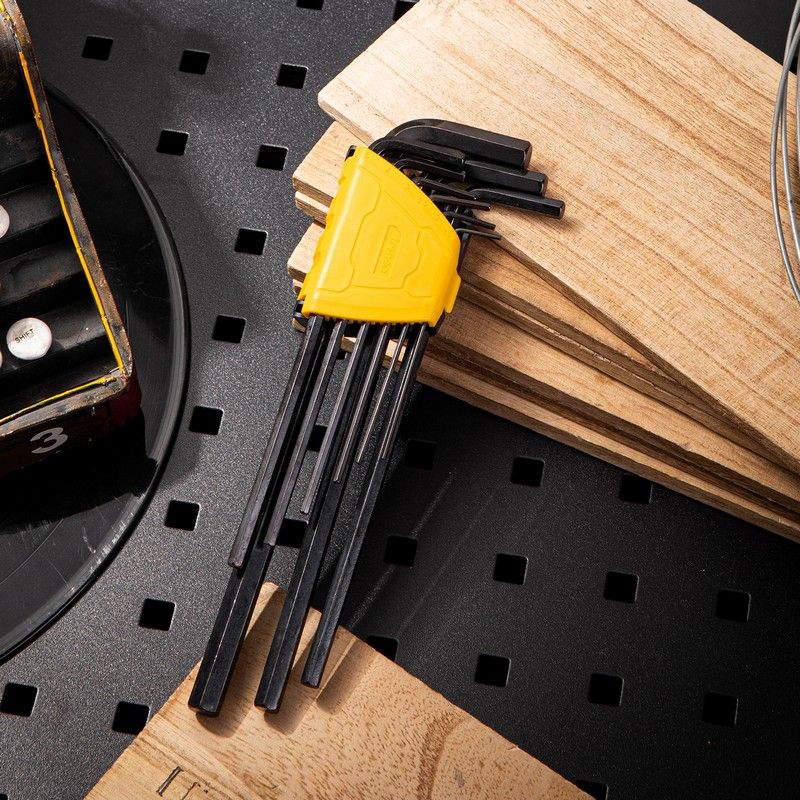 Описание: Набор сверхдлинных шестигранных ключей Deli — это незаменимый инструмент для работы с крепежом, который имеет внутренний шестигранник. Набор включает в себя 9 ключей разных размеров, что позволяет подобрать оптимальный вариант для любой задачи.
