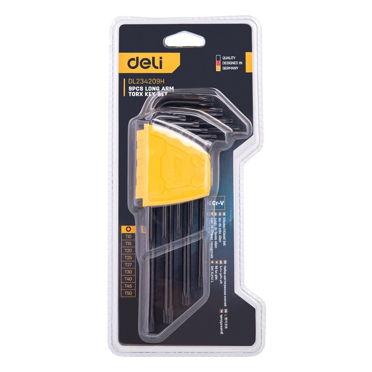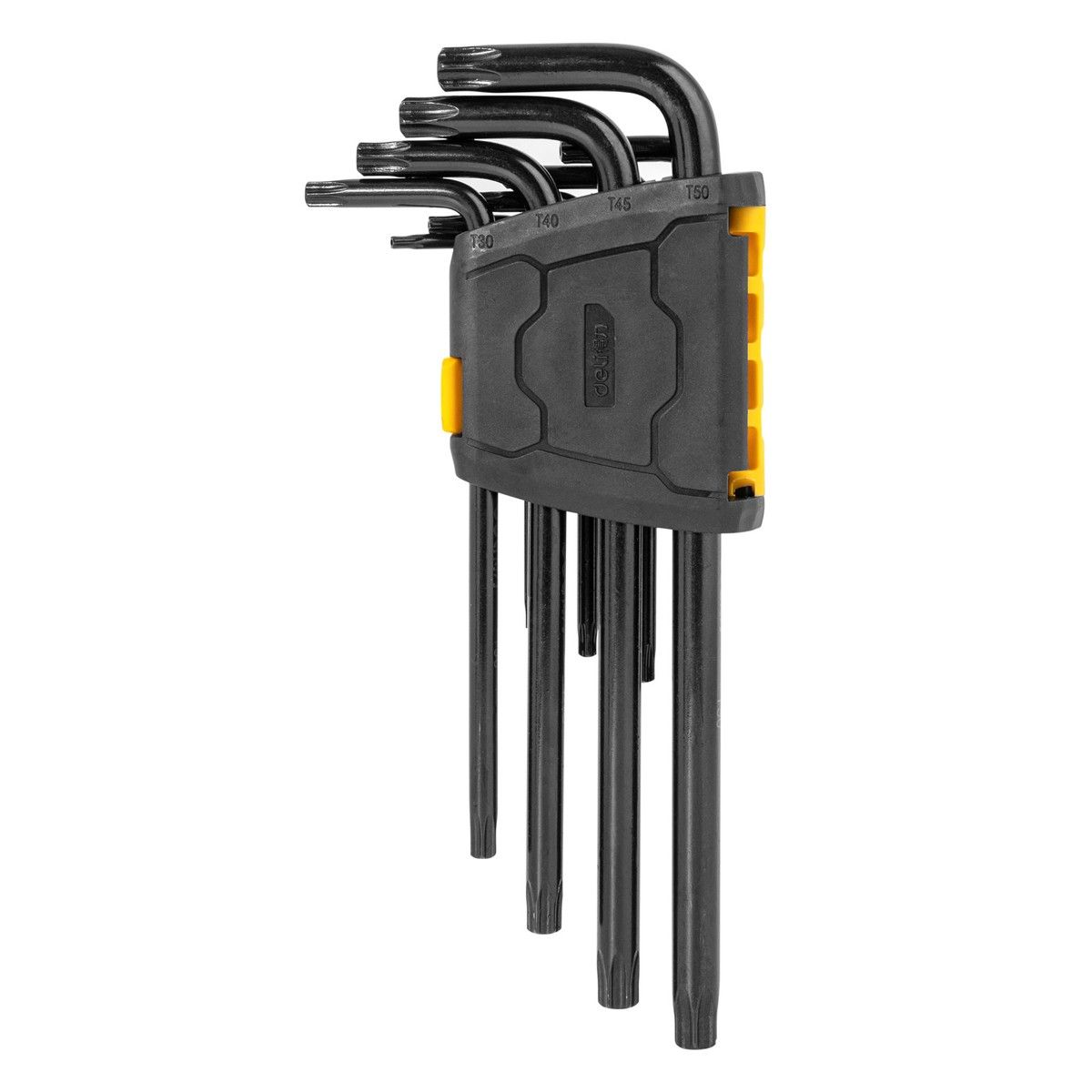 Набор шестигранных ключей «TORX" удлиненных Deli DL234209H 9 шт размеры T10,T15,T20,T25,T27,T30,T40,T45,T50, пластиковый держатель