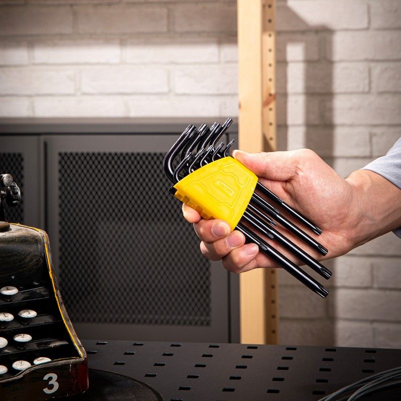 Набор шестигранных ключей «TORX» от Deli включает в себя 9 инструментов различных размеров: T10, T15, T20, T25, T27, T30, T40, T45 и T50. Это позволяет использовать ключи для широкого спектра задач. Удлинённая форма ключей обеспечивает удобство работы в труднодоступных местах.