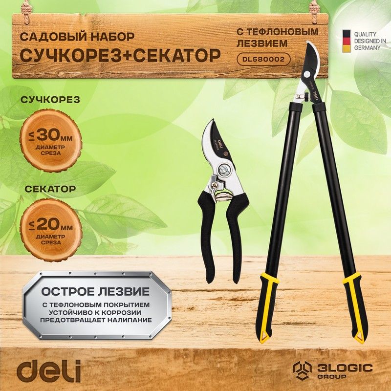 Набор сучкорез + секатор Deli DL580002 лезвия с тефлоновым покрытием, длина 75/21 см, макс. диаметр реза 30/15 мм, сталь 55С