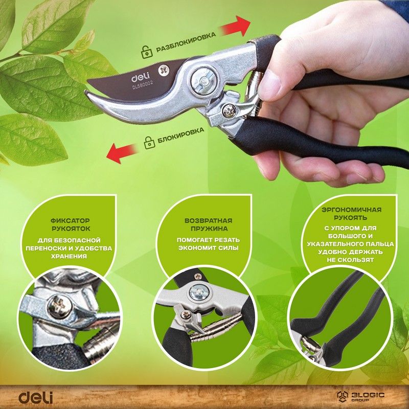 Набор садовых режущих инструментов Deli включает в себя сучкорез и секатор, которые станут незаменимыми помощниками в уходе за вашим садом.