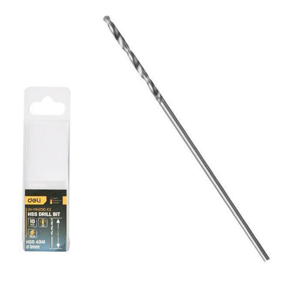 Набор сверл по металлу (1мм, 10 шт) Deli DH-MHZ010-E3 сталь HSS 4341, угол заточки 118 град, пласт. кейс