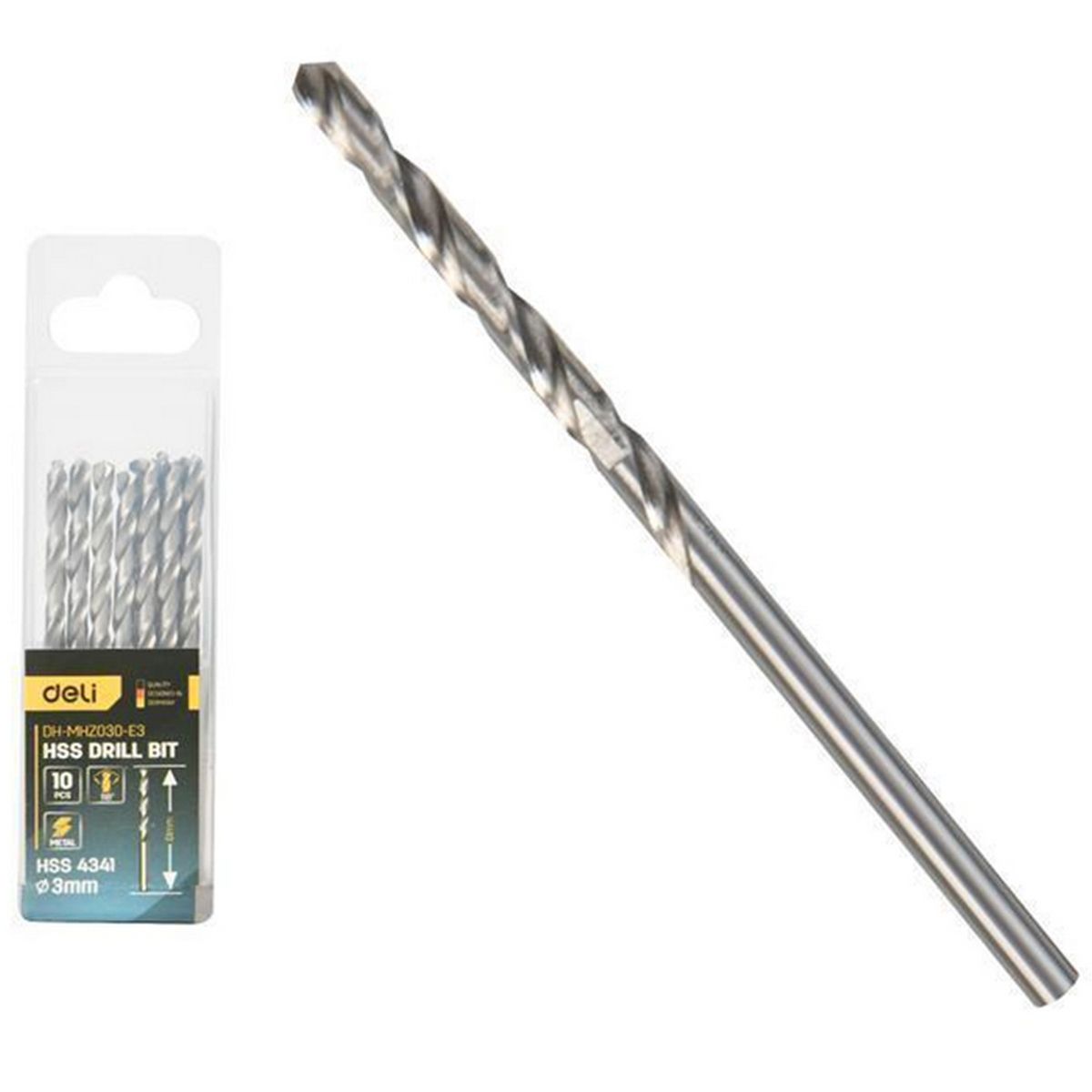 Набор сверл по металлу (2мм, 10 шт) Deli DH-MHZ020-E3 сталь HSS 4341, угол заточки 118 град, пласт. кейс