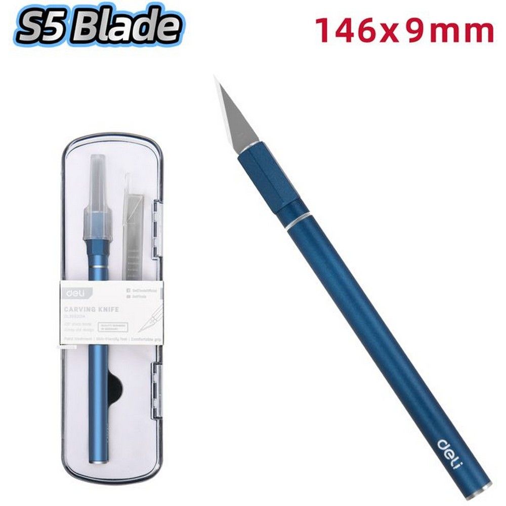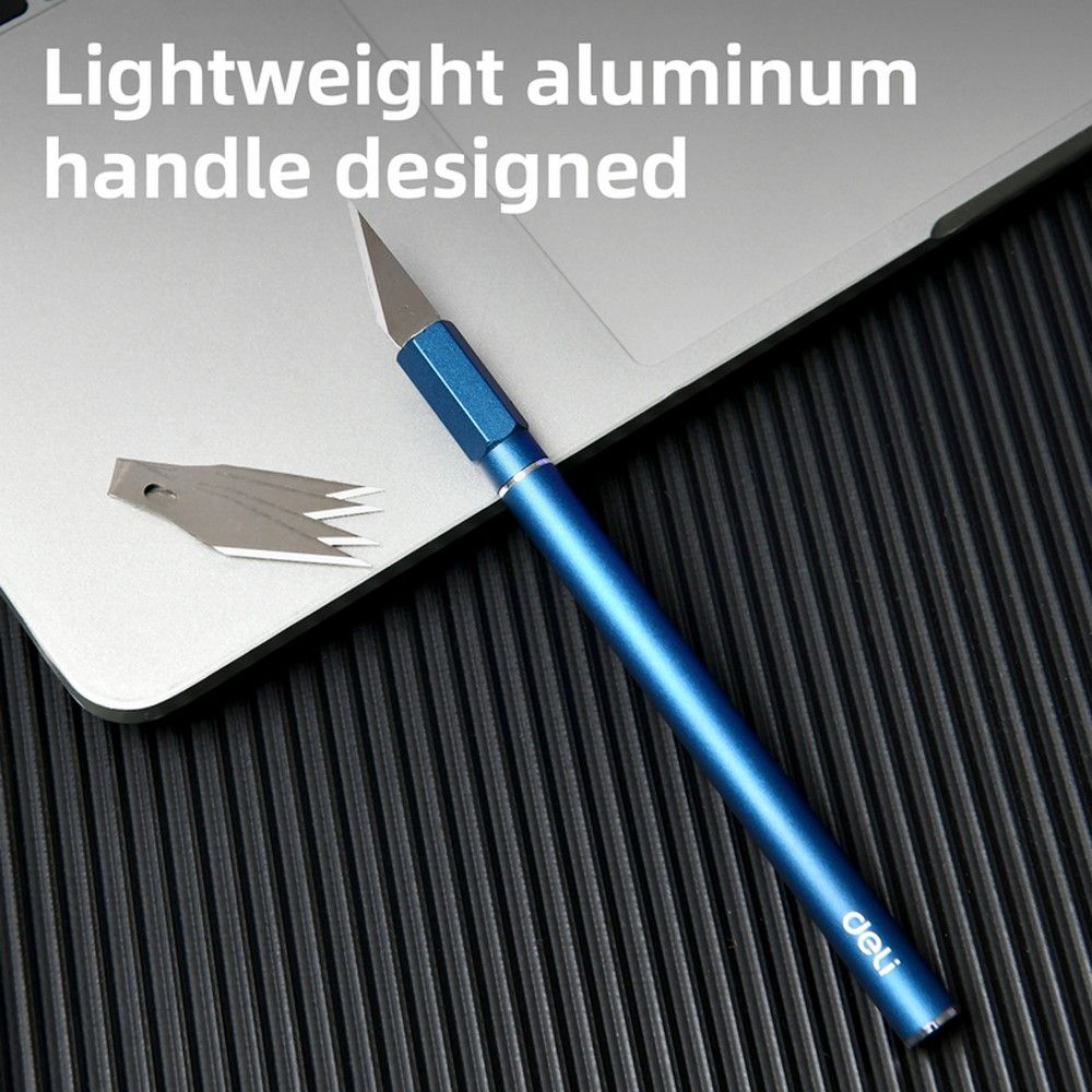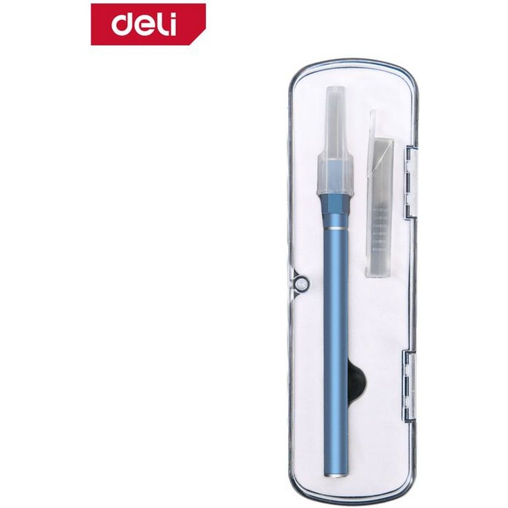 Нож-скальпель макетный Deli DL359201B цвет синий, 146 x 9 мм, 10 лезвий в комплекте, алюминиевый корпус, пластиковый кейс