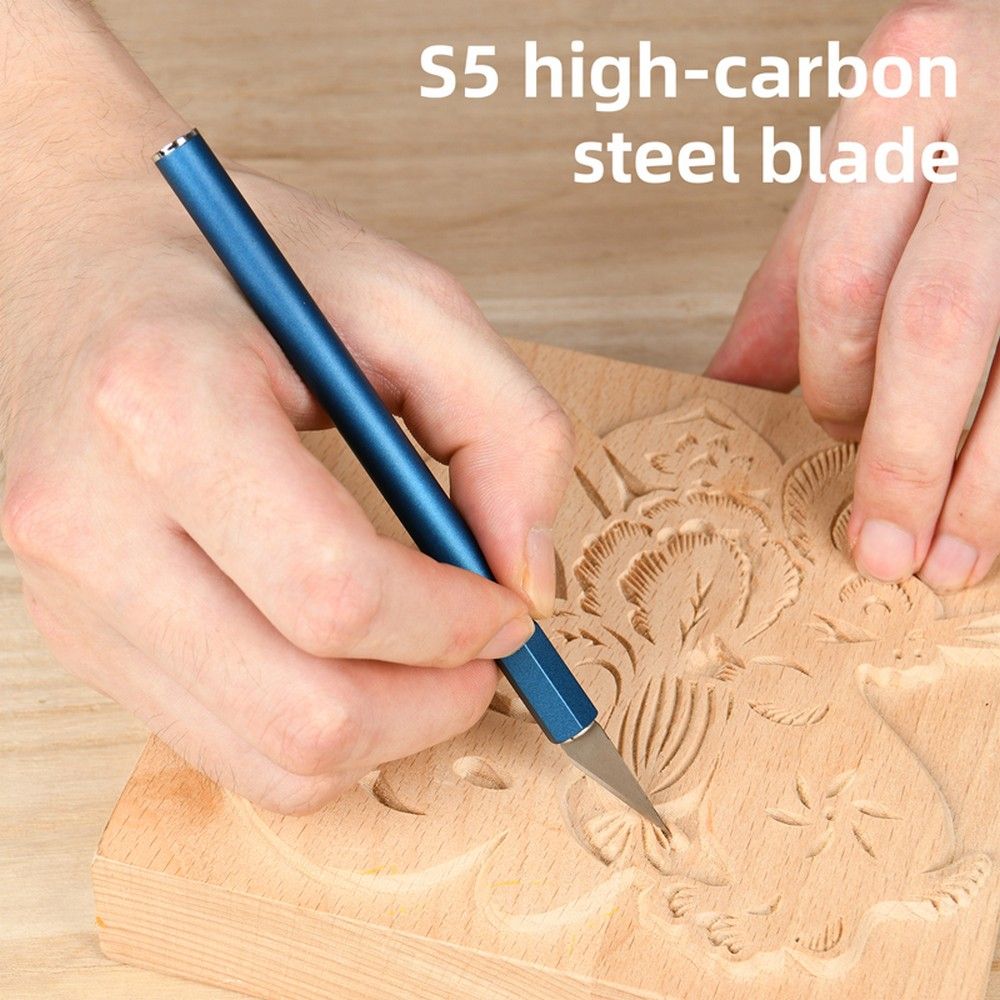 Для работы с деревянными или пластиковыми макетами и пр.. Фиксация лезвия при помощи винтового зажима